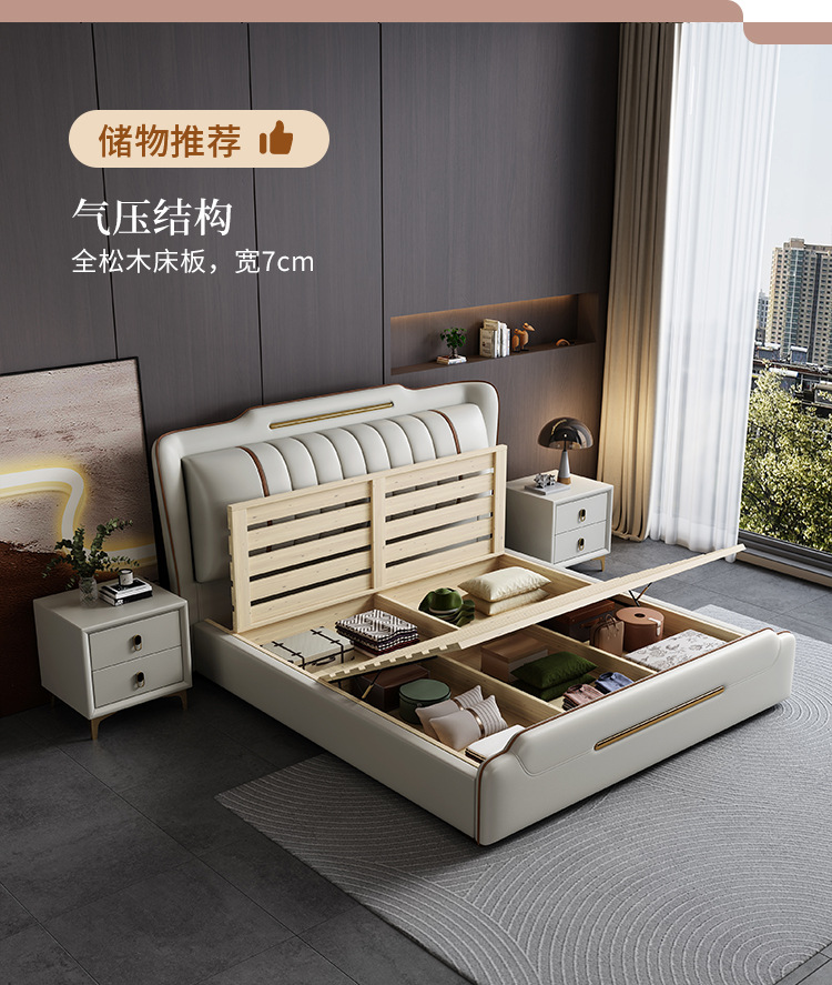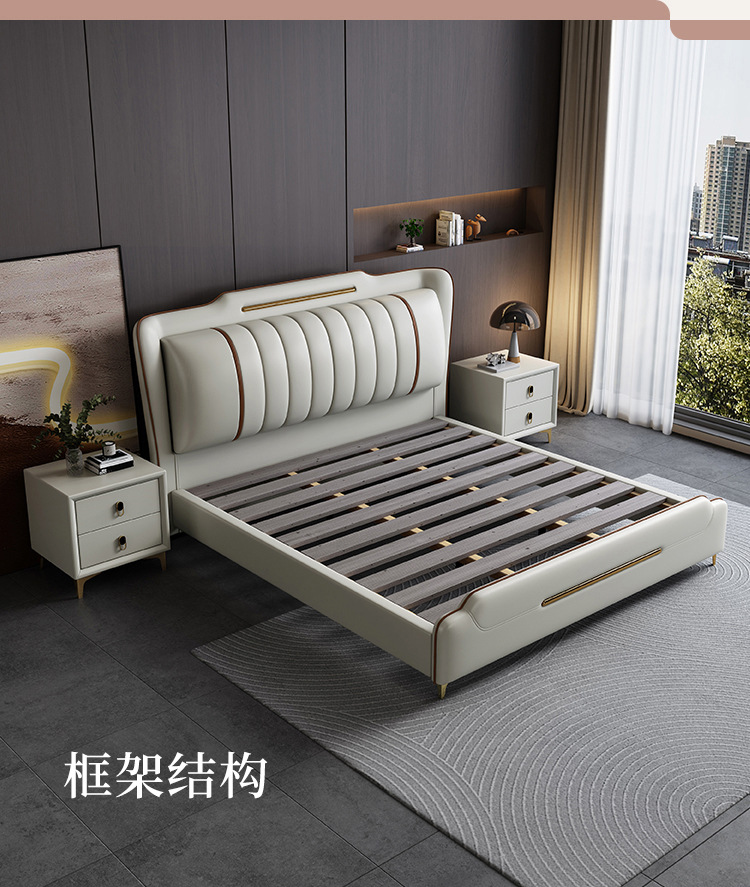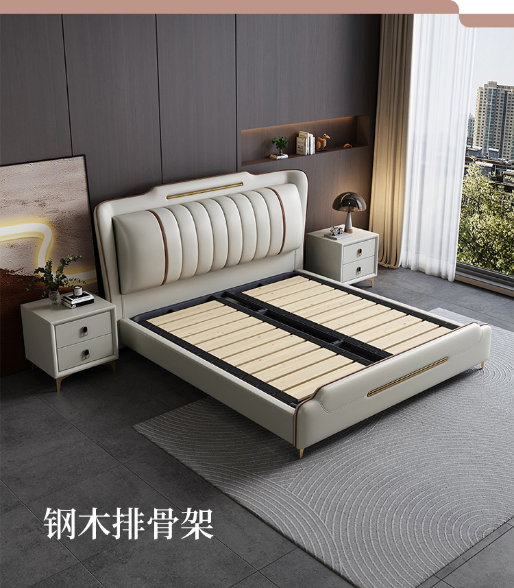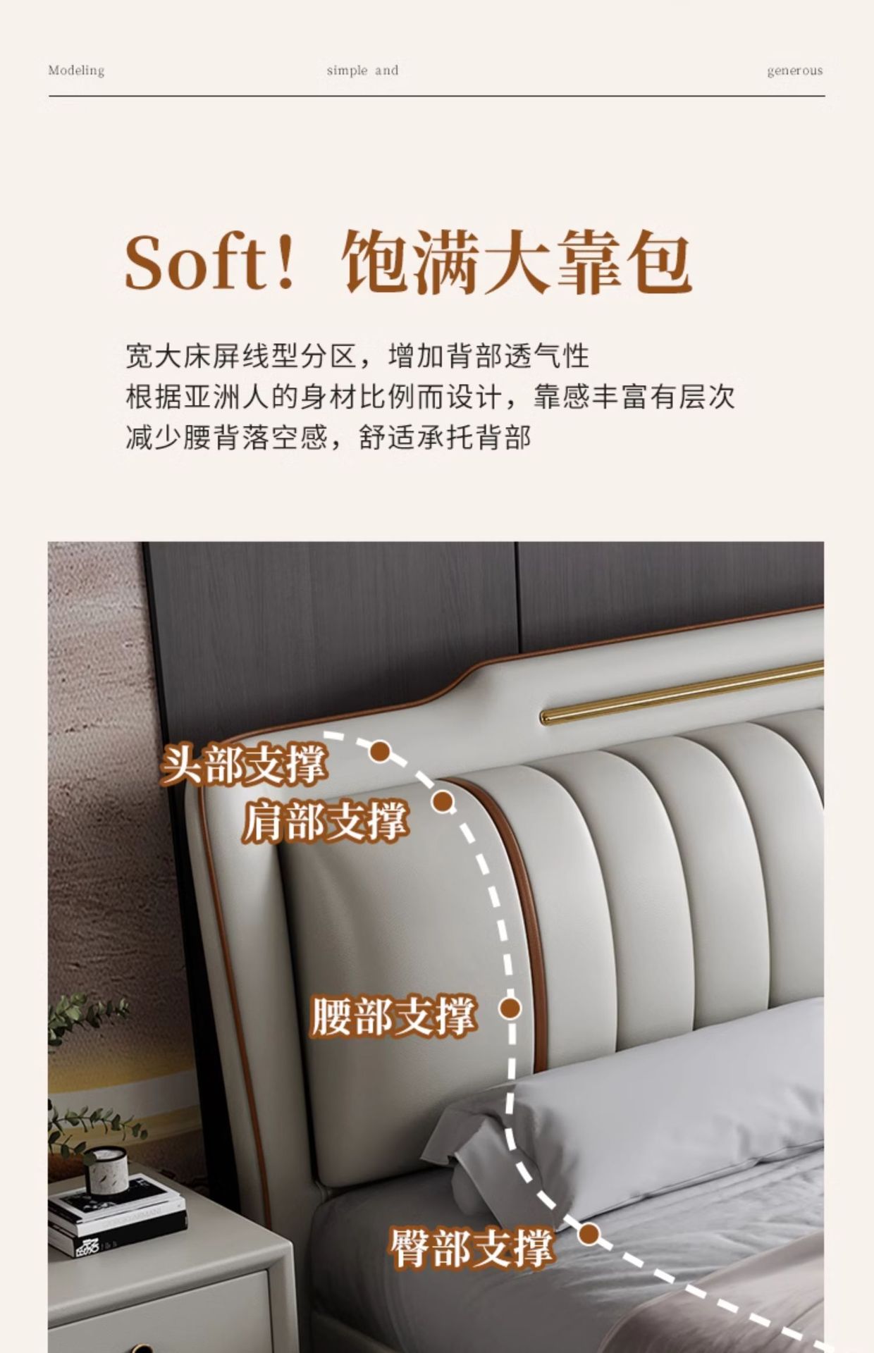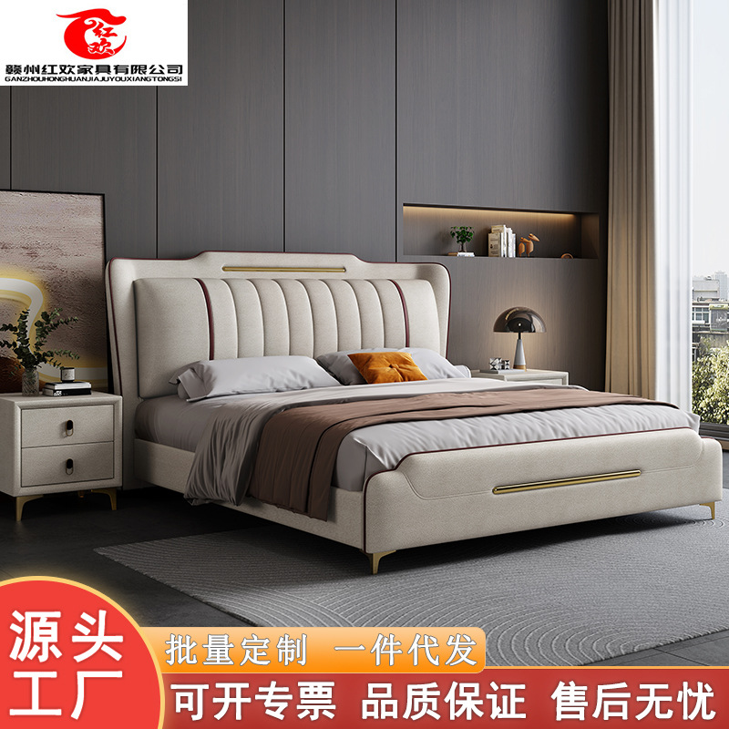 이탈리아 미니멀리스트 가죽 침대 1.8 m 마스터 침대 간단한 더블 1.5m 라이트 럭셔리 하이 엔드 대기 현대 기술 천 큰 침대스토어 가기