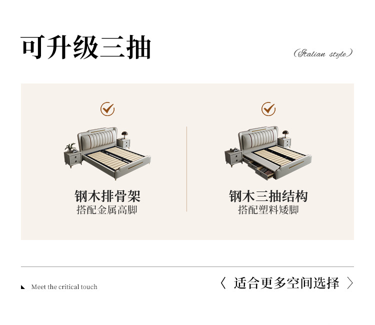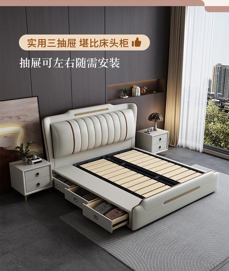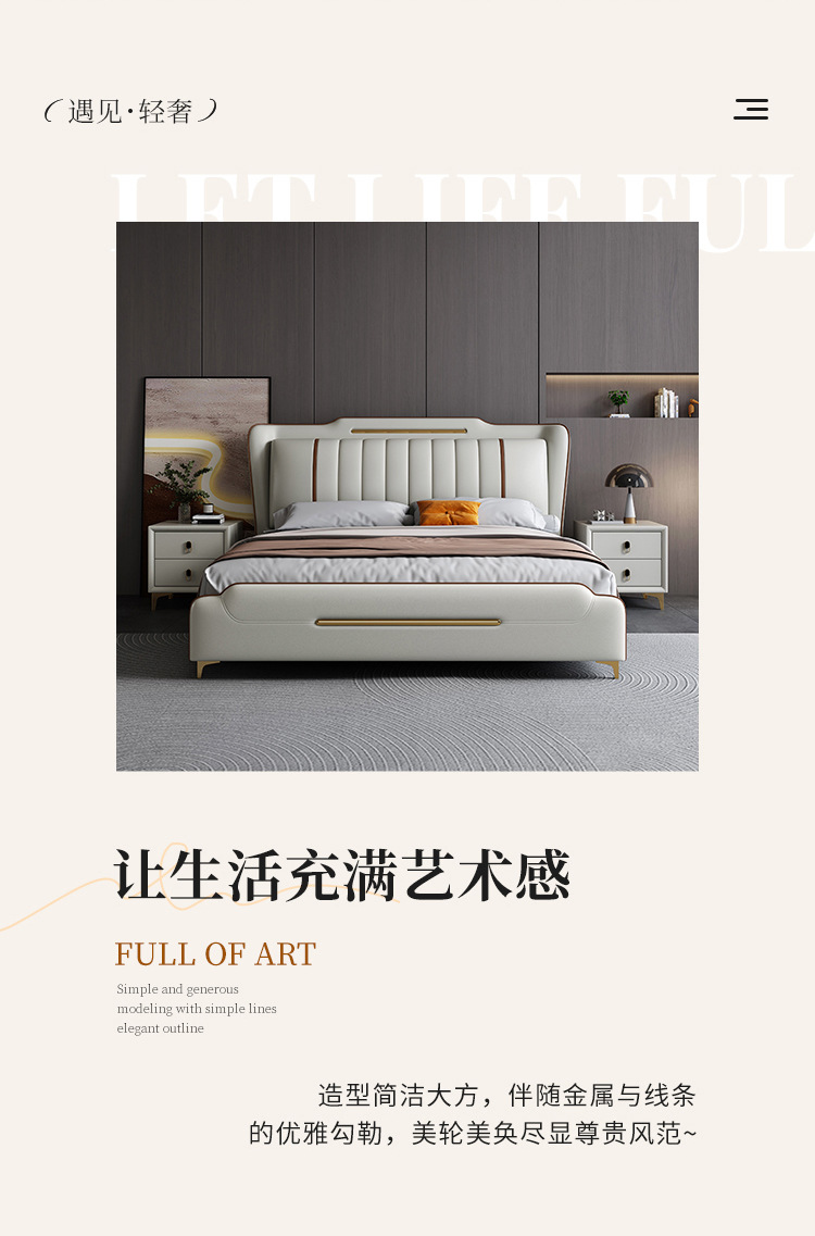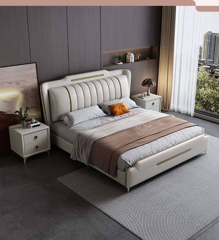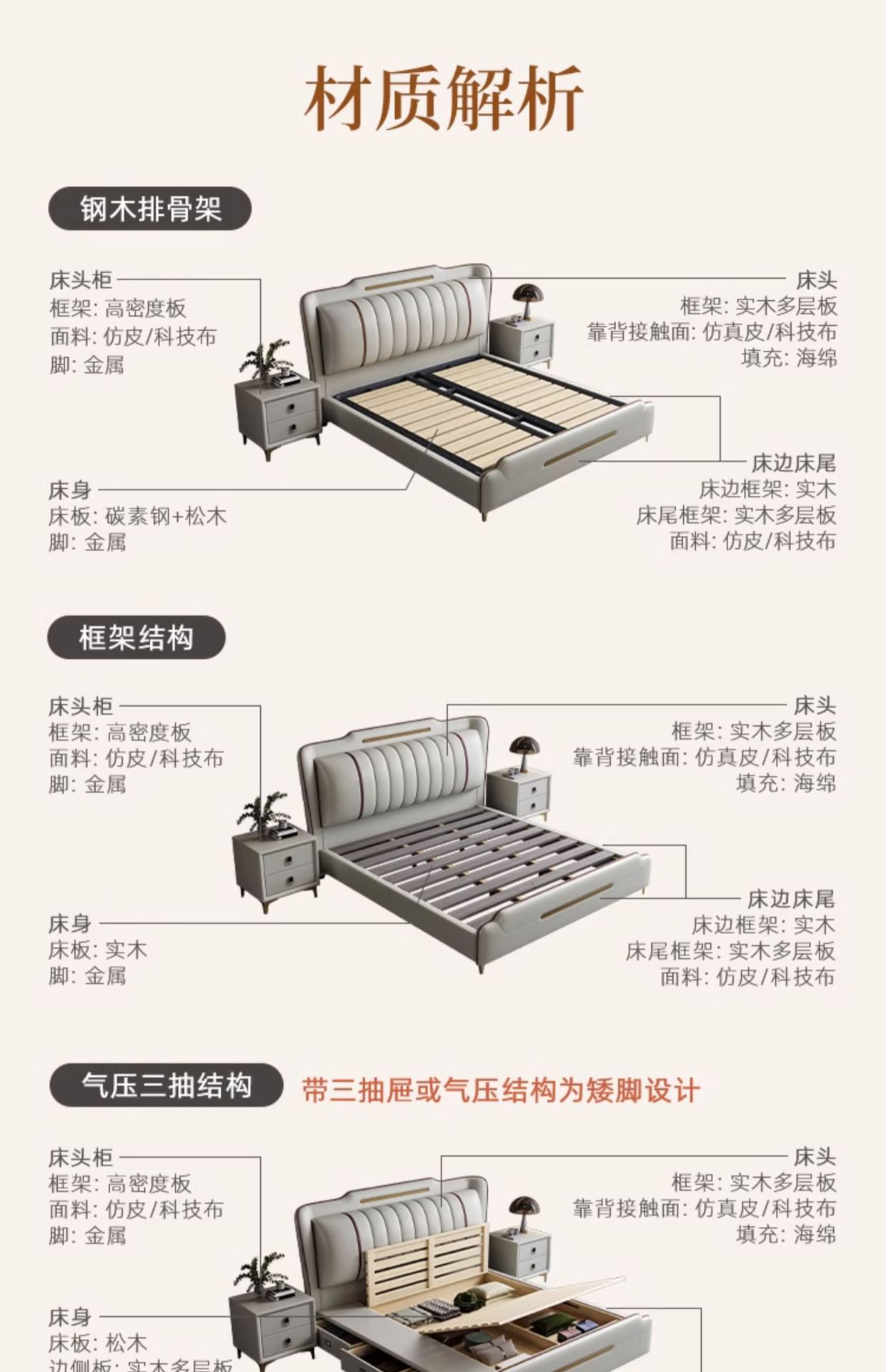 이탈리아 미니멀리스트 가죽 침대 1.8 m 마스터 침대 간단한 더블 1.5m 라이트 럭셔리 하이 엔드 대기 현대 기술 천 큰 침대스토어 가기
