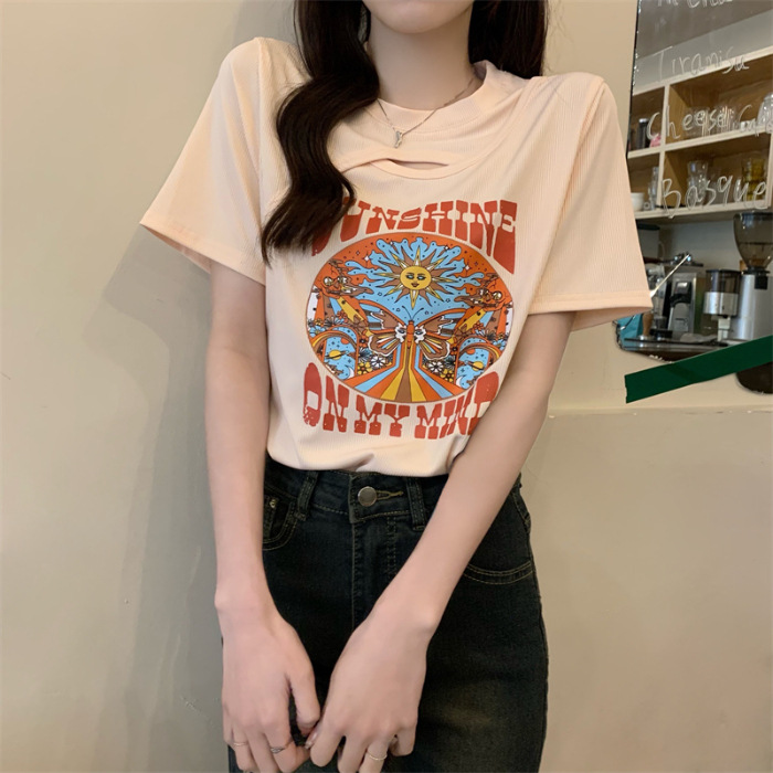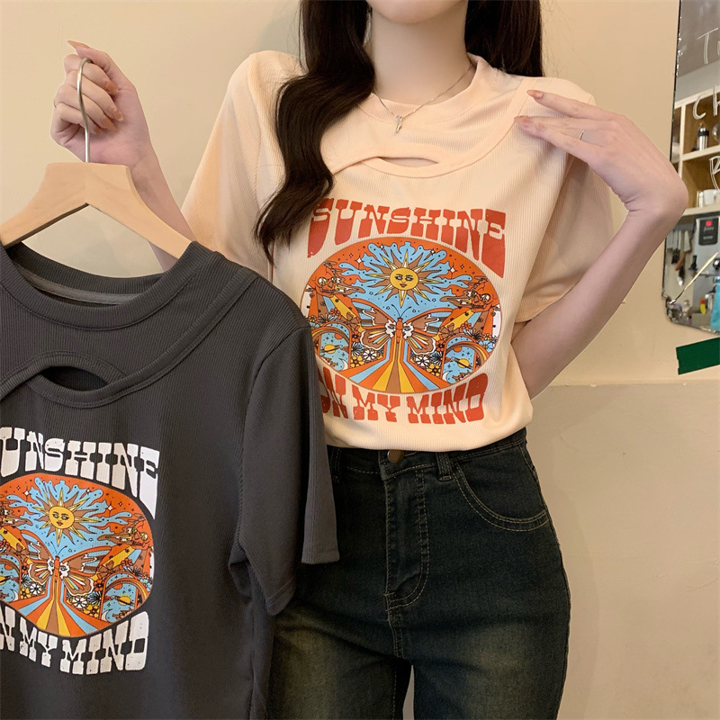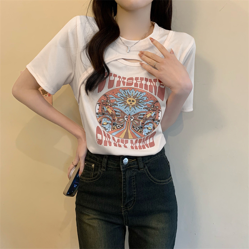 D07 # 대형 여성 2024 여름 새로운 미국 슬림 웨스턴 스타일 최고 지방 mm 작은 어깨 짧은 소매 티셔츠스토어 가기