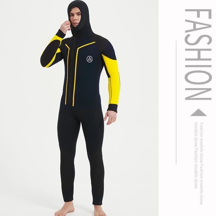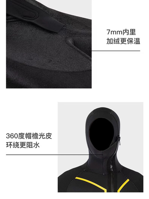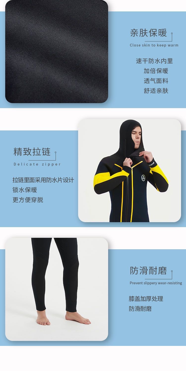 딥 다이빙 7MM 남성용 결합 플러스 벨벳 패딩 냉장 따뜻한 세미 드라이 방수 다이빙 세트 후드 수영 다이빙 세트