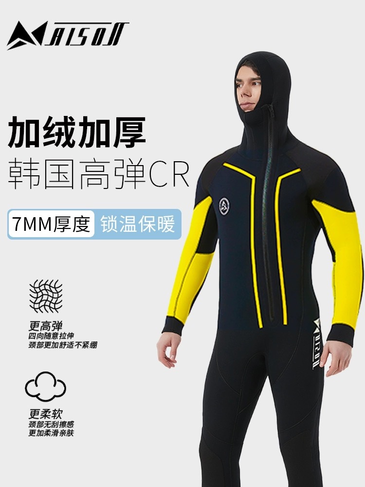딥 다이빙 7MM 남성용 결합 플러스 벨벳 패딩 냉장 따뜻한 세미 드라이 방수 다이빙 세트 후드 수영 다이빙 세트스토어 가기