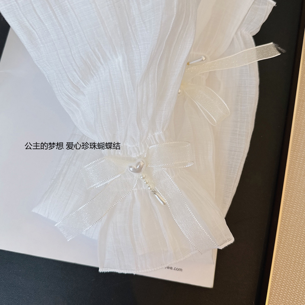配饰是爱心珍珠蝴蝶结,满足了女孩子的幻想,超级甜美、公主风~