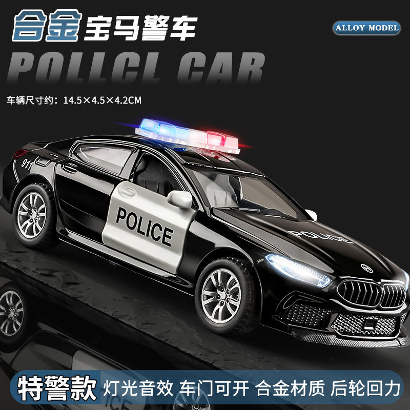 • [더블 도어 사운드 및 라이트 효과] 합금 BMW 특수 경찰차-블랙