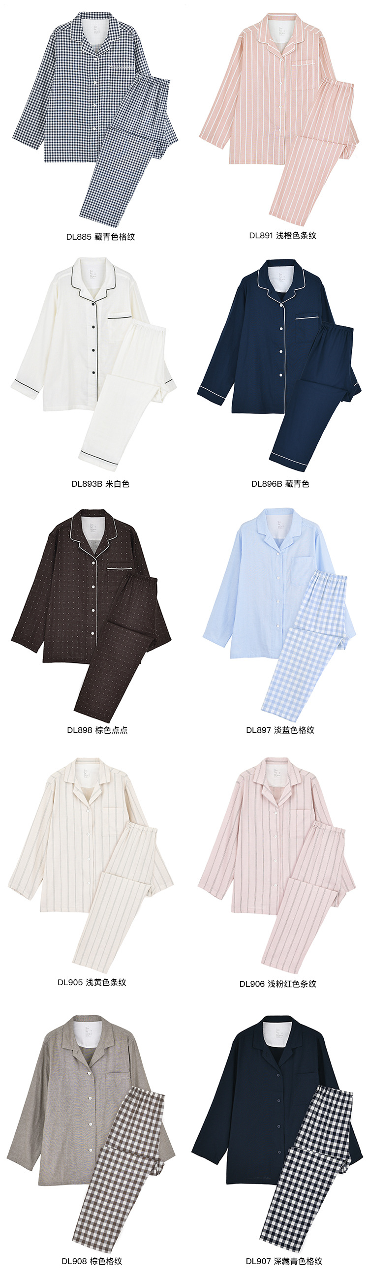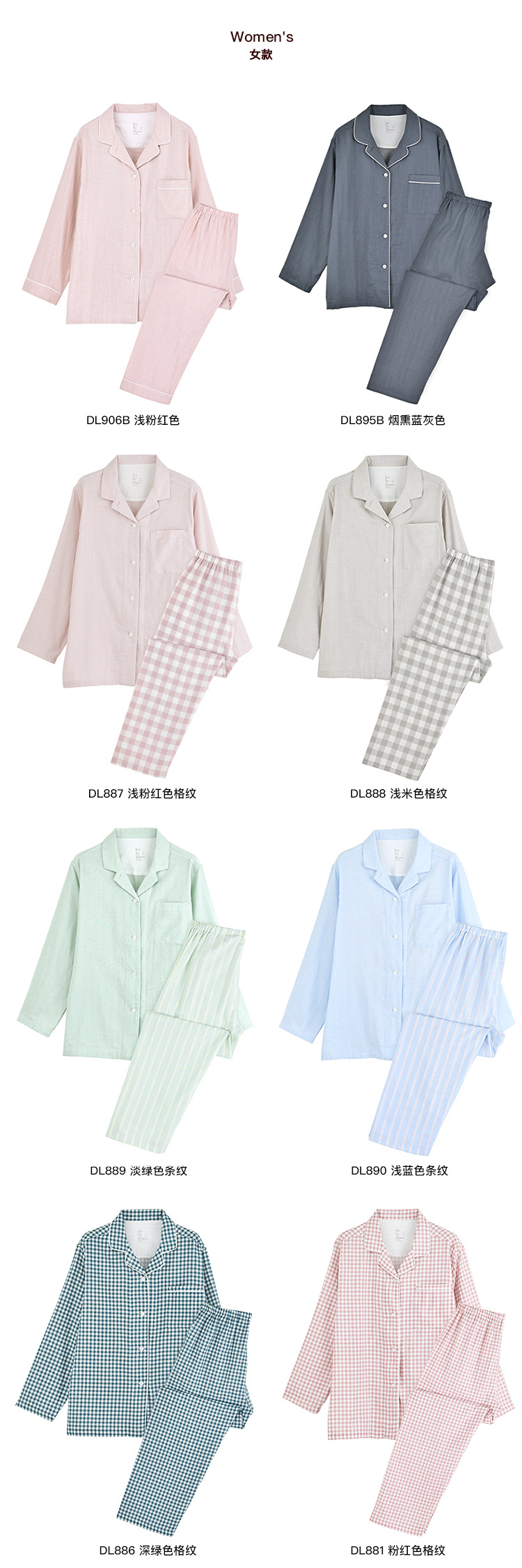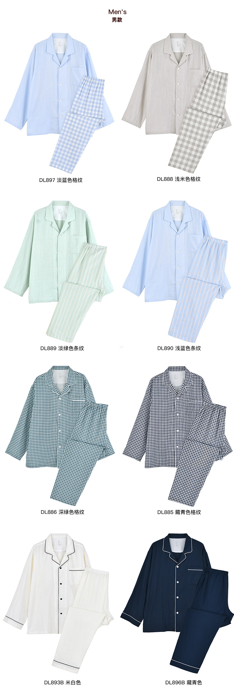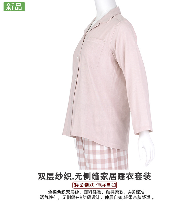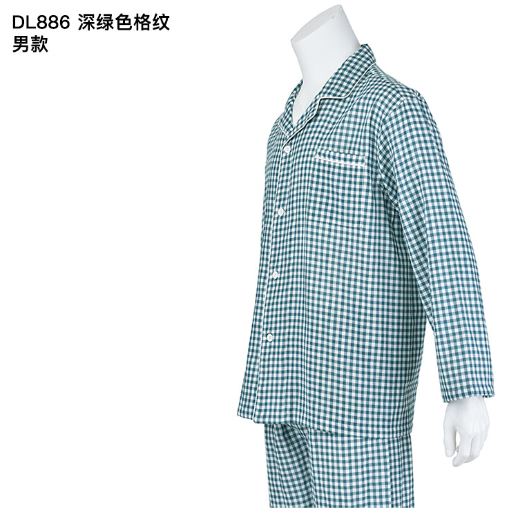 Yipin Non-Side-Sew Double-Layer Yarn Pajamas Unprinted 남성 및 여성 홈 의류 봄 및 가을 순수 코튼 민트 맘보 스타일스토어 가기