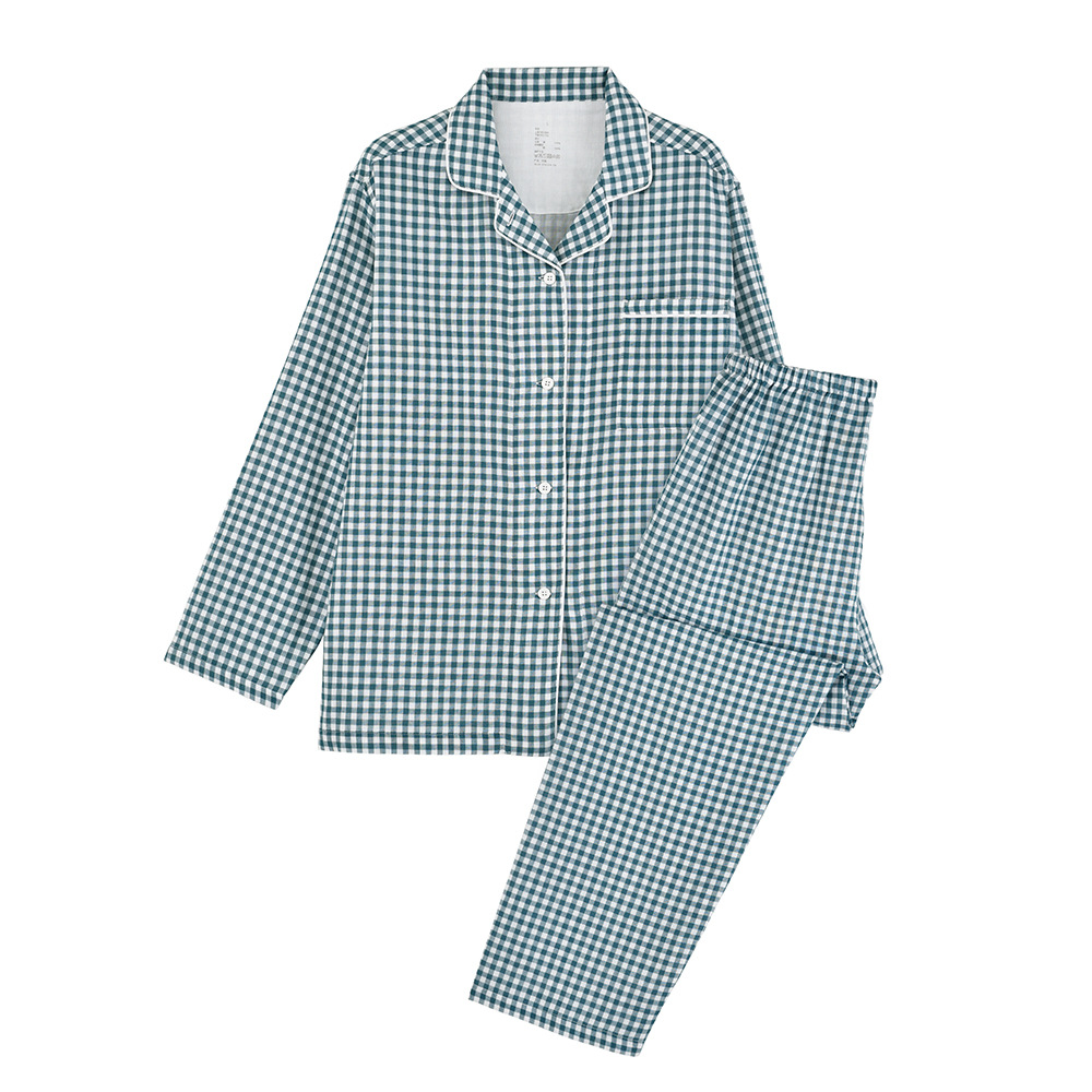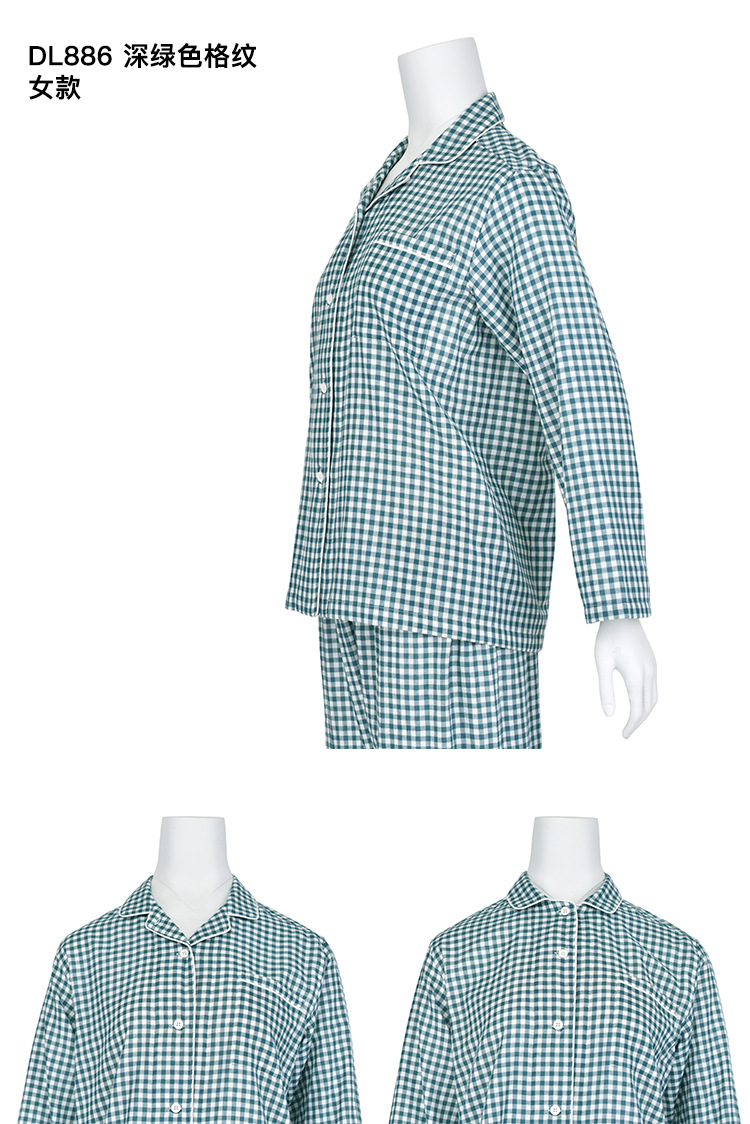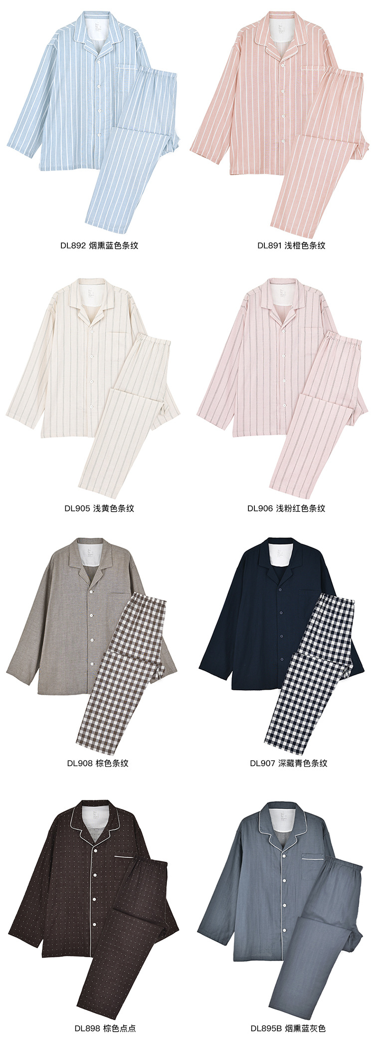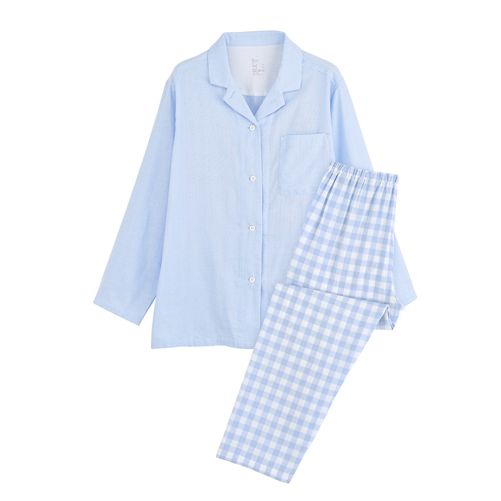 Yipin Non-Side-Sew Double-Layer Yarn Pajamas Unprinted 남성 및 여성 홈 의류 봄 및 가을 순수 코튼 민트 맘보 스타일스토어 가기