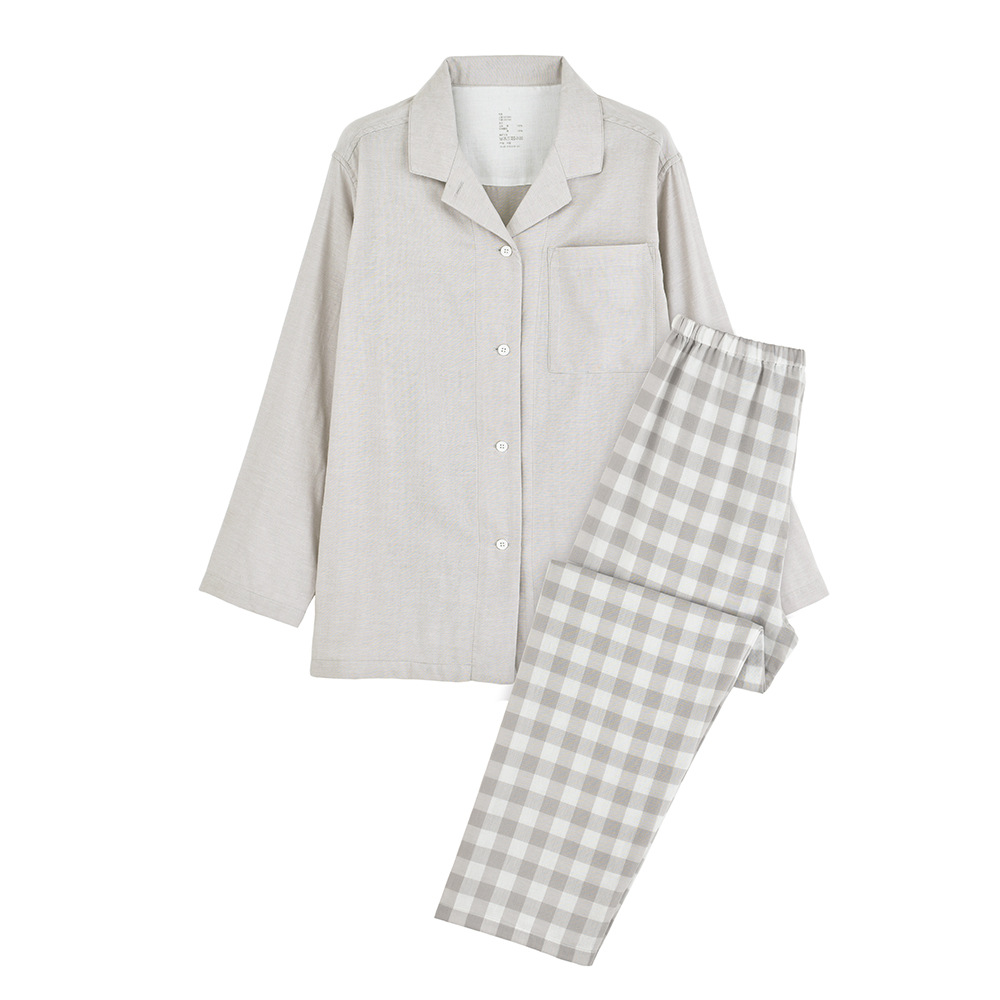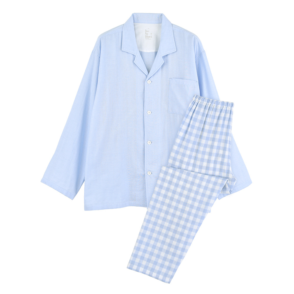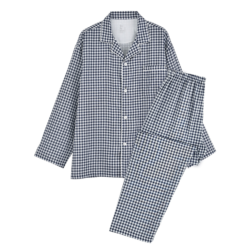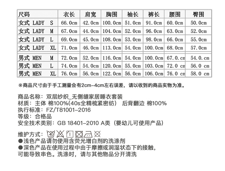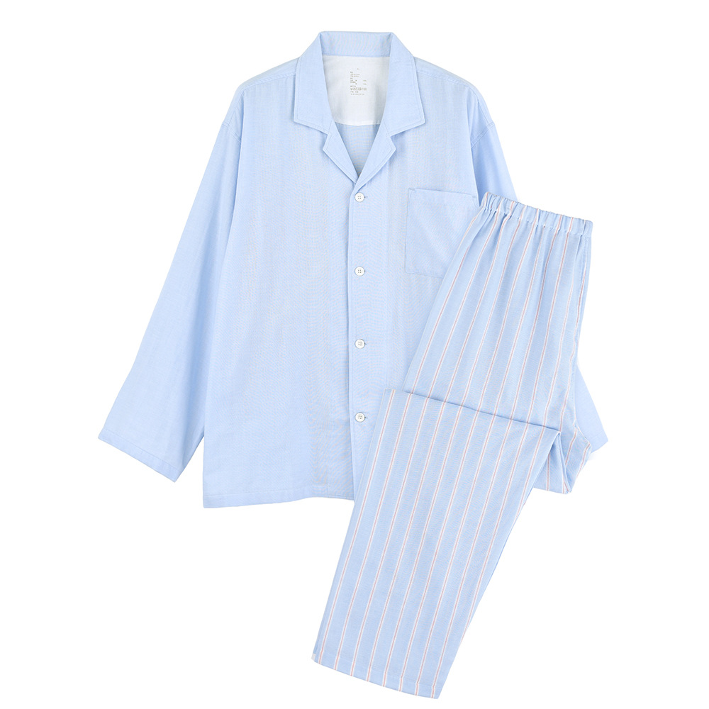 Yipin Non-Side-Sew Double-Layer Yarn Pajamas Unprinted 남성 및 여성 홈 의류 봄 및 가을 순수 코튼 민트 맘보 스타일스토어 가기