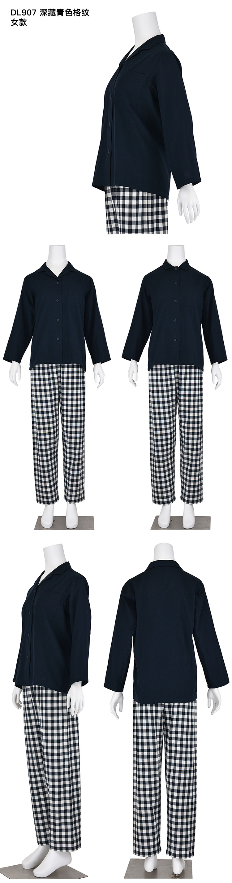 • DL907 다크 네이비 블루 체크 무늬 여성 모델