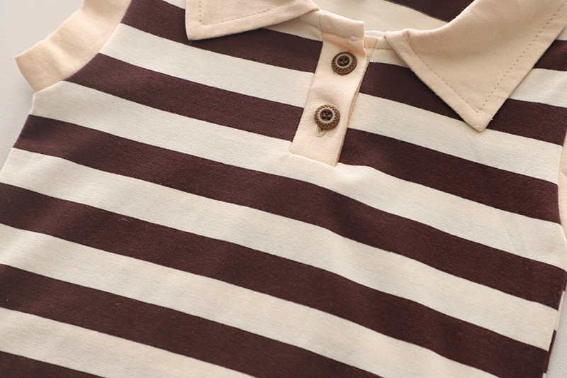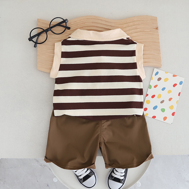 아동복 소년의 여름 민소매 세트 새로운 스타일 칼라 스트라이프 어린이 조끼 반팔 캐주얼 반바지 투피스 패션 세트