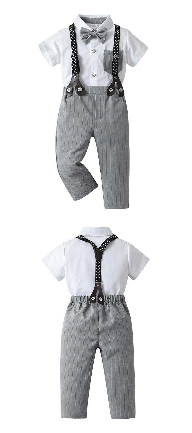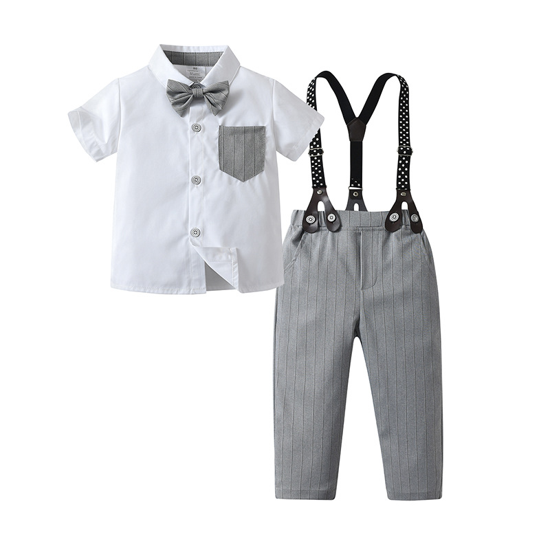 80码-90码-100码-110码-120码-130码   新款跨境童装背带裤两件套宝宝衣服夏季短袖条纹英伦绅士男童套装