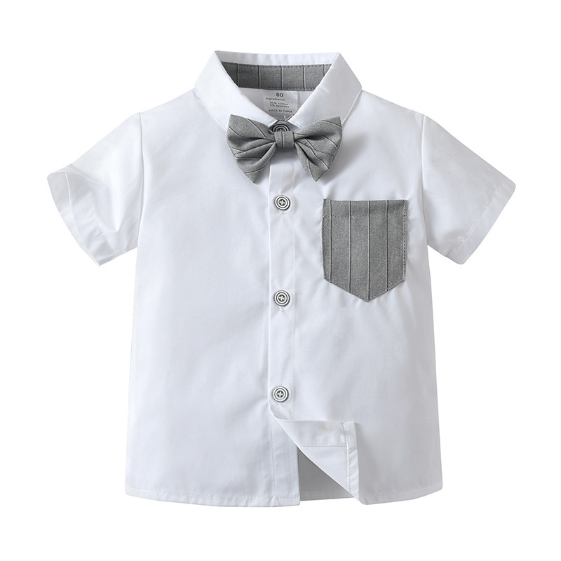 새로운 국경 간 아동복 투피스 세트 아기 옷 여름 반팔 줄무늬 영국 신사 소년 세트