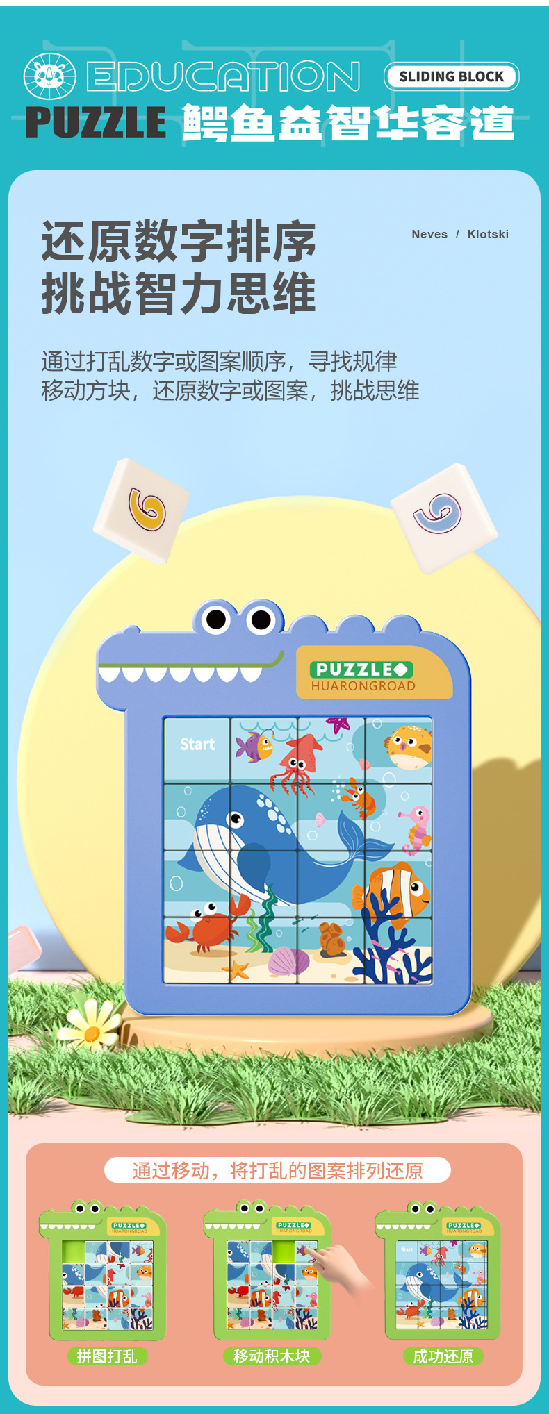 악어 디지털 퍼즐 슬라이딩 퍼즐 만화 어린이 생각 논리 교육 어린이 탕람 교육 장난감