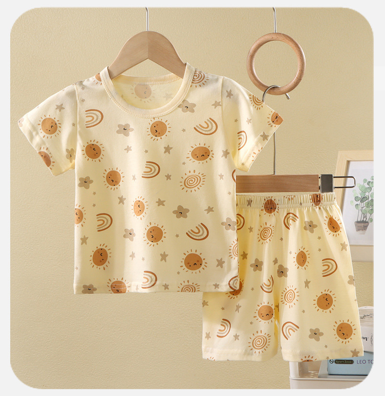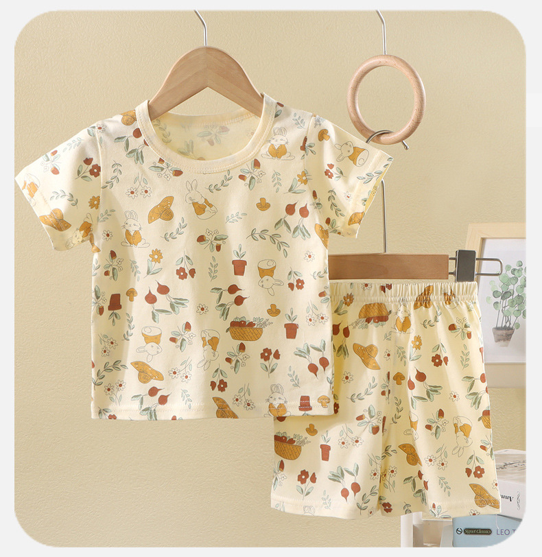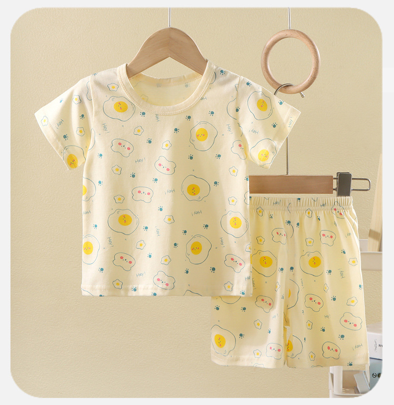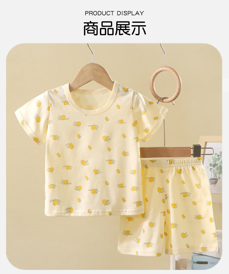 어린이 코튼 반팔 세트 여름 클래스 두 조각 세트 소년과 소녀 만화 인쇄 티셔츠 아기 얇은 반바지 배치스토어 가기