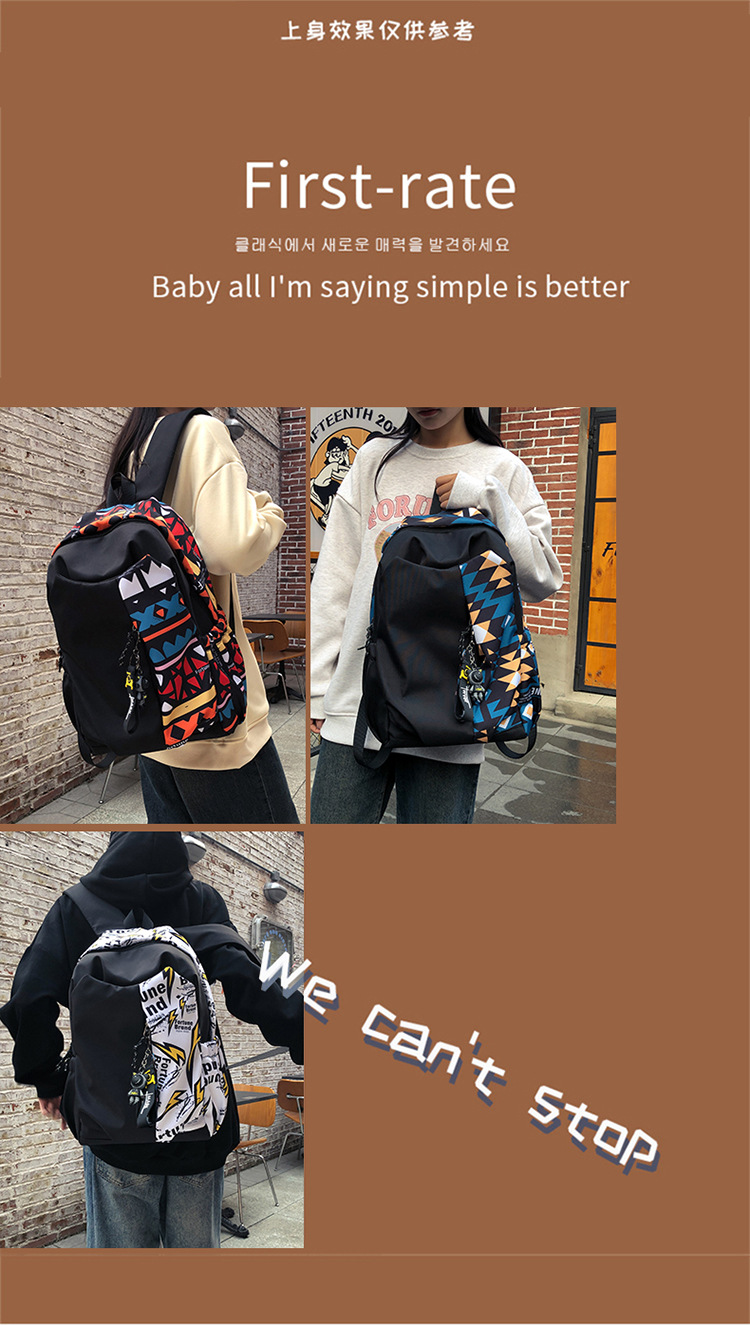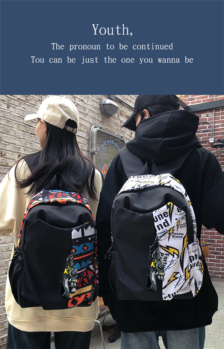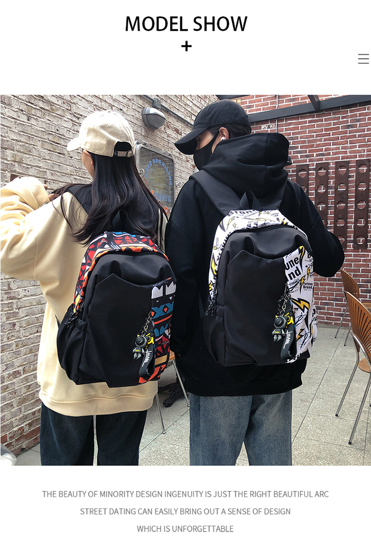 미국 하이 스트리트 그래피티 스쿨백 소년 패션 트렌드 중학생 배낭 봄 나들을위한 높은 아름다움 가치스토어 가기