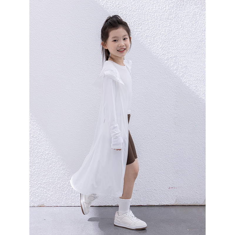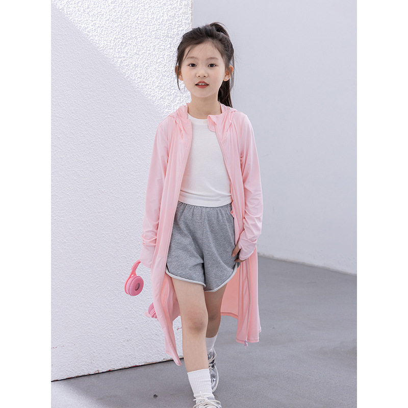 어린이 긴 태양 보호 의류 2024 여름 새 소녀 경량 통기성 쿨 후드 스킨 의류 태양 보호 코트