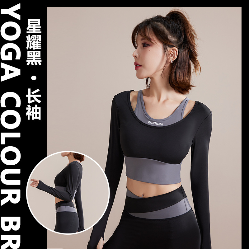 여성용 요가복 2025 봄 가을 신상 긴팔 아우터웨어 가슴 패드 포함 통기성 러닝 스포츠 탑 피트니스복스토어 가기