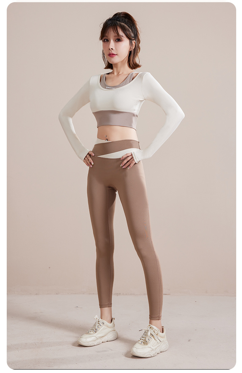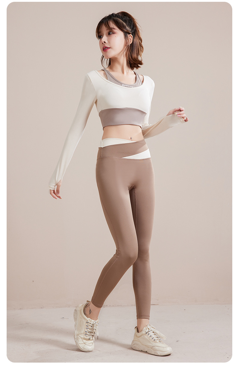 여성용 요가복 2025 봄 가을 신상 긴팔 아우터웨어 가슴 패드 포함 통기성 러닝 스포츠 탑 피트니스복