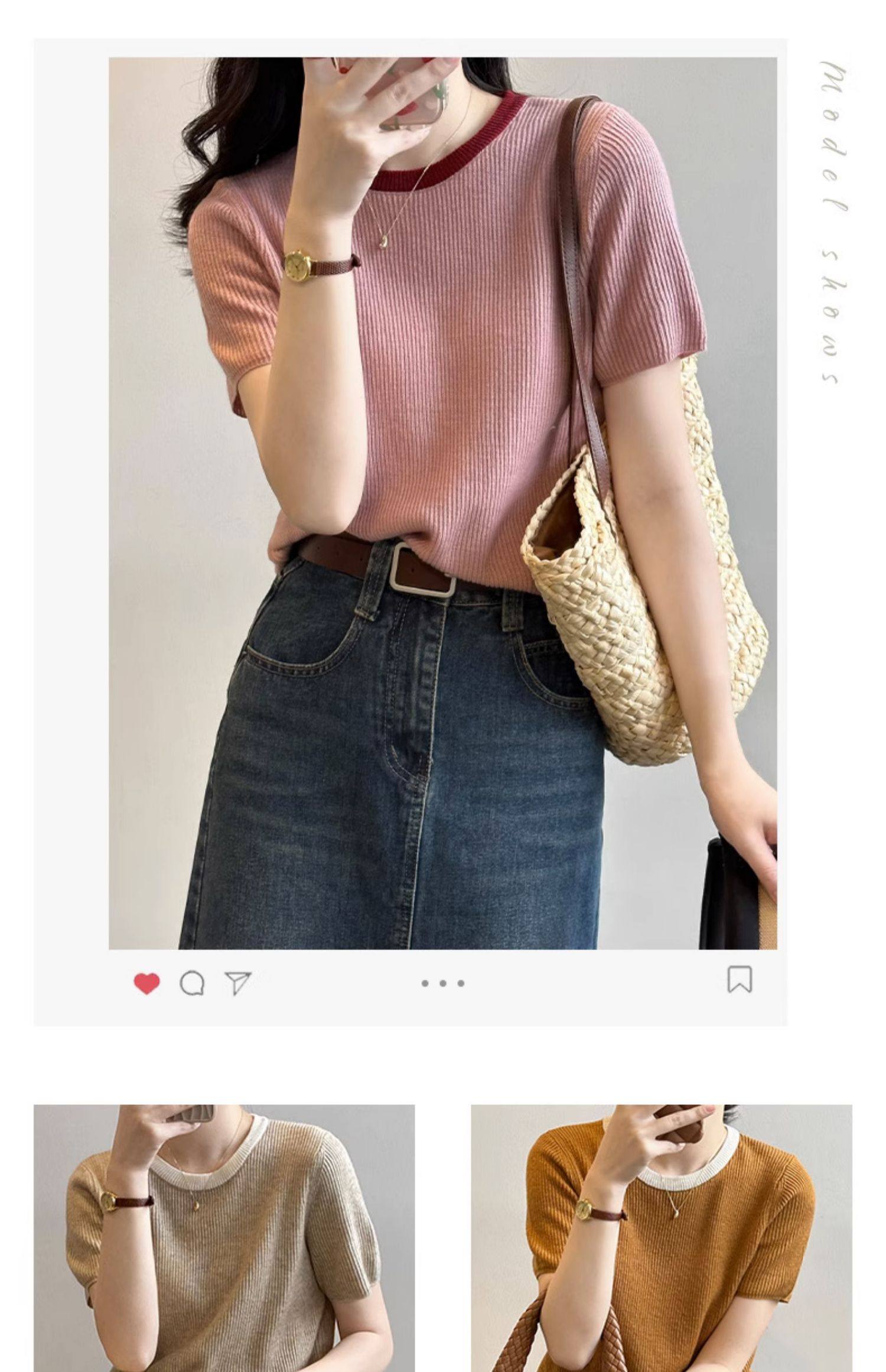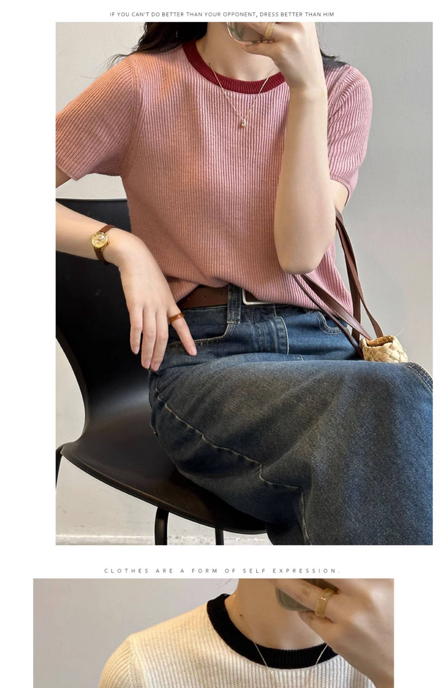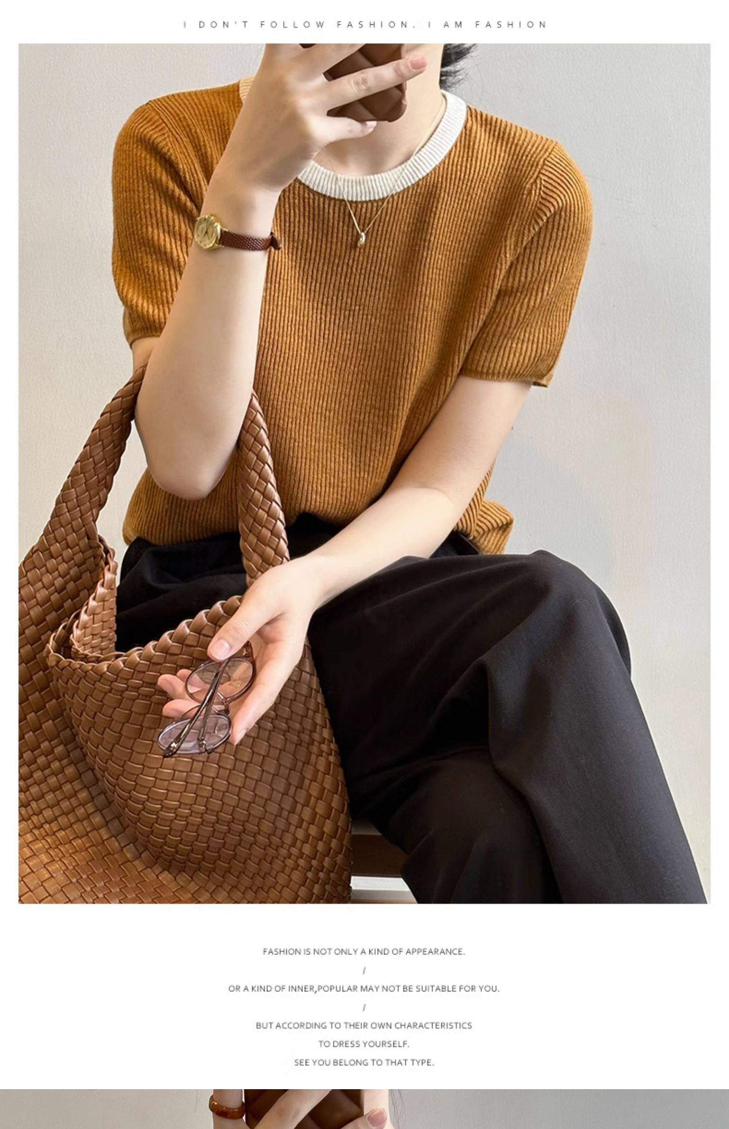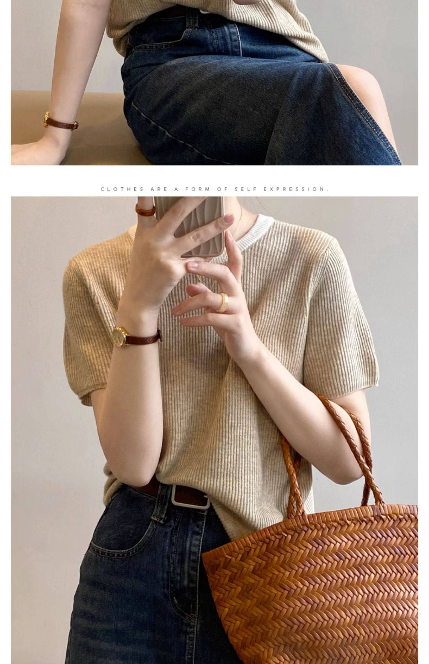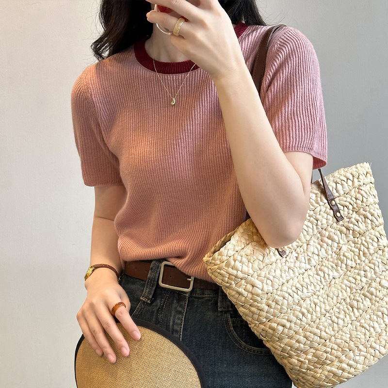 日系女士短袖t恤女夏季女装2024新款气质上衣宽松薄款冰丝针织衫