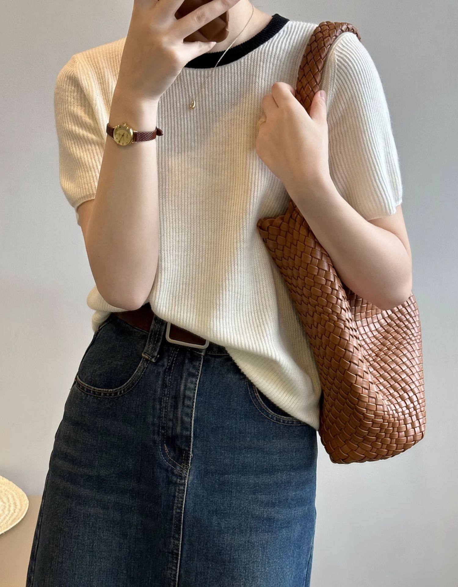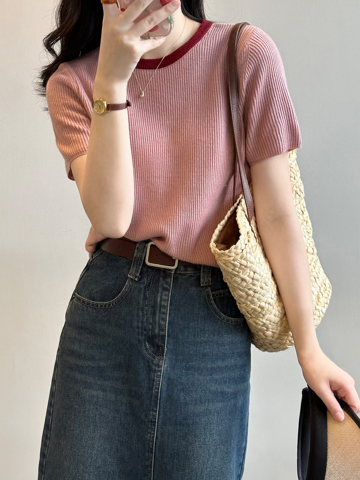 일본 스타일 여성 반팔 티셔츠 여름 여성복 2025 신상 우아한 상의 루즈핏 얇은 아이스 실크 니트웨어
