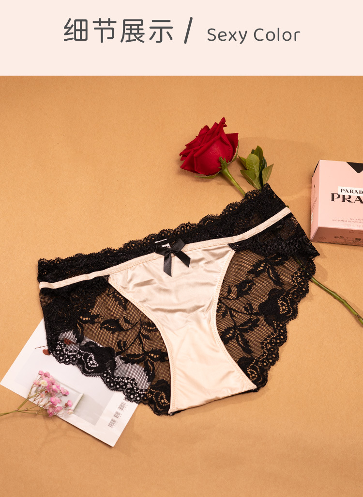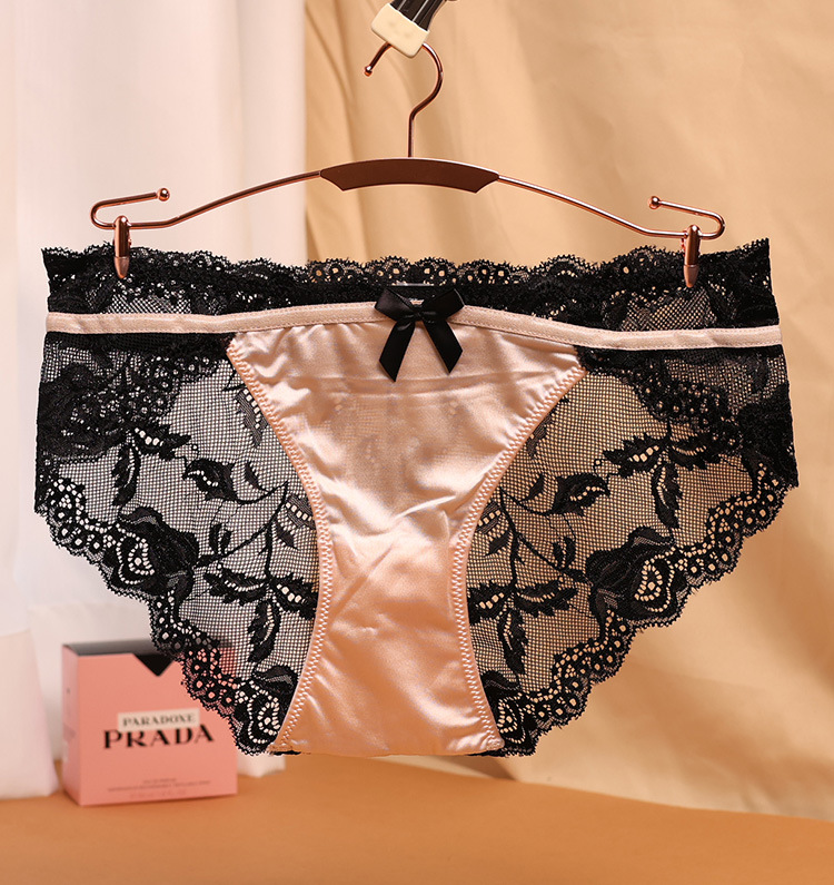 유럽과 미국의 섹시한 레이스 속옷 여성 패션 가벼운 럭셔리 실크 새틴 유혹 브리프면 가랑이 소녀 허리
