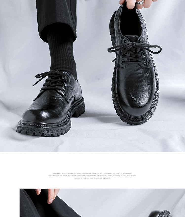 영국 스타일 주름 디자인 플랫폼 높이 증가 캐주얼 가죽 신발 비즈니스 원피스 큰 머리 가죽 신발 웨딩 신랑 가죽 신발 남성용스토어 가기