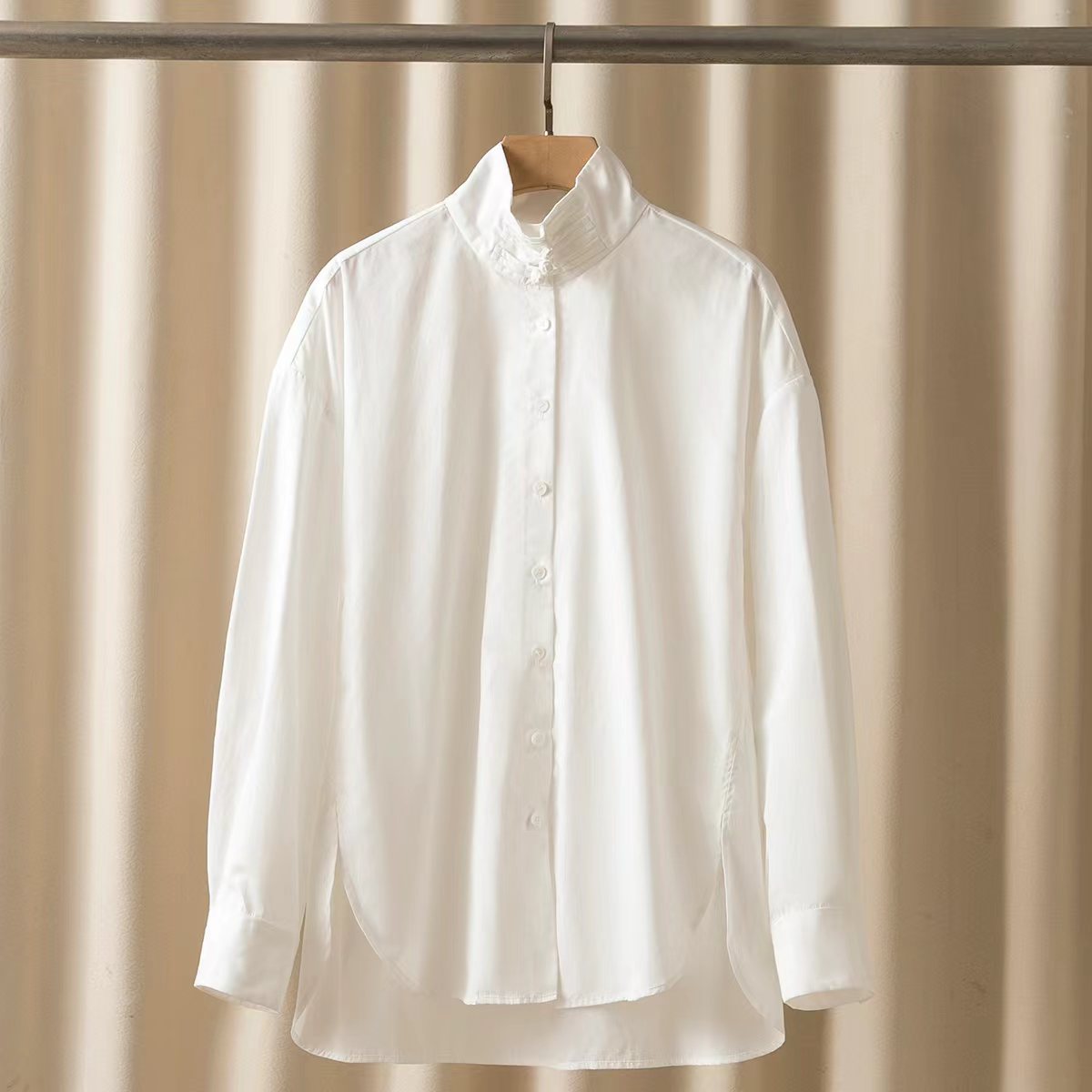 틈새 패션 스타 같은 스타일 새로운 중국 버튼 느슨한 코튼 화이트 셔츠