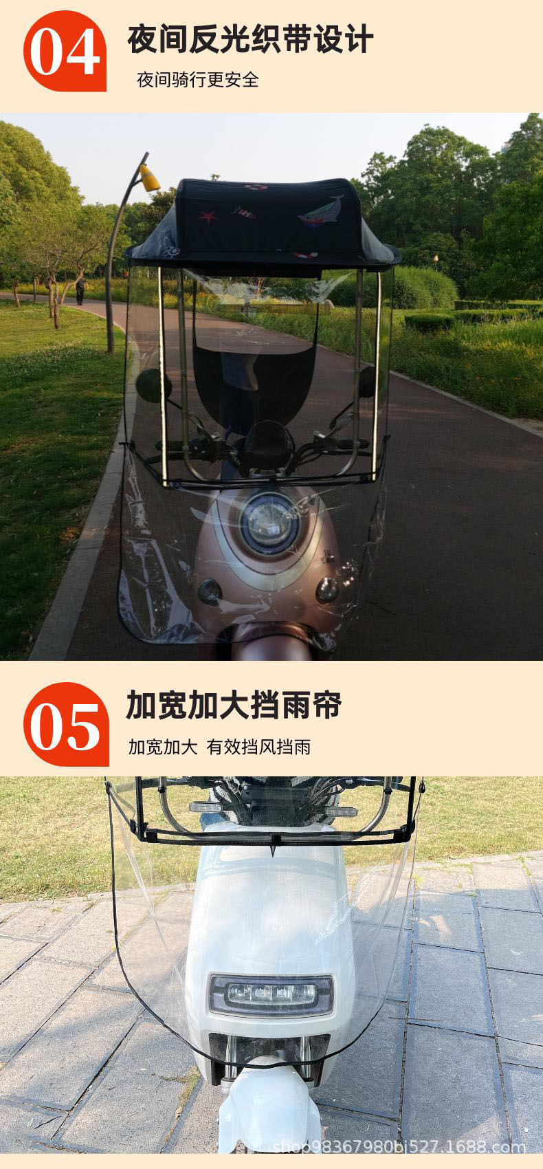 전기 자동차 캐노피 캐노피 하드 보드 완전히 둘러싸인 캐노피 배터리 페달 오토바이 태양 보호 차양 우산 바람 및 비 커버