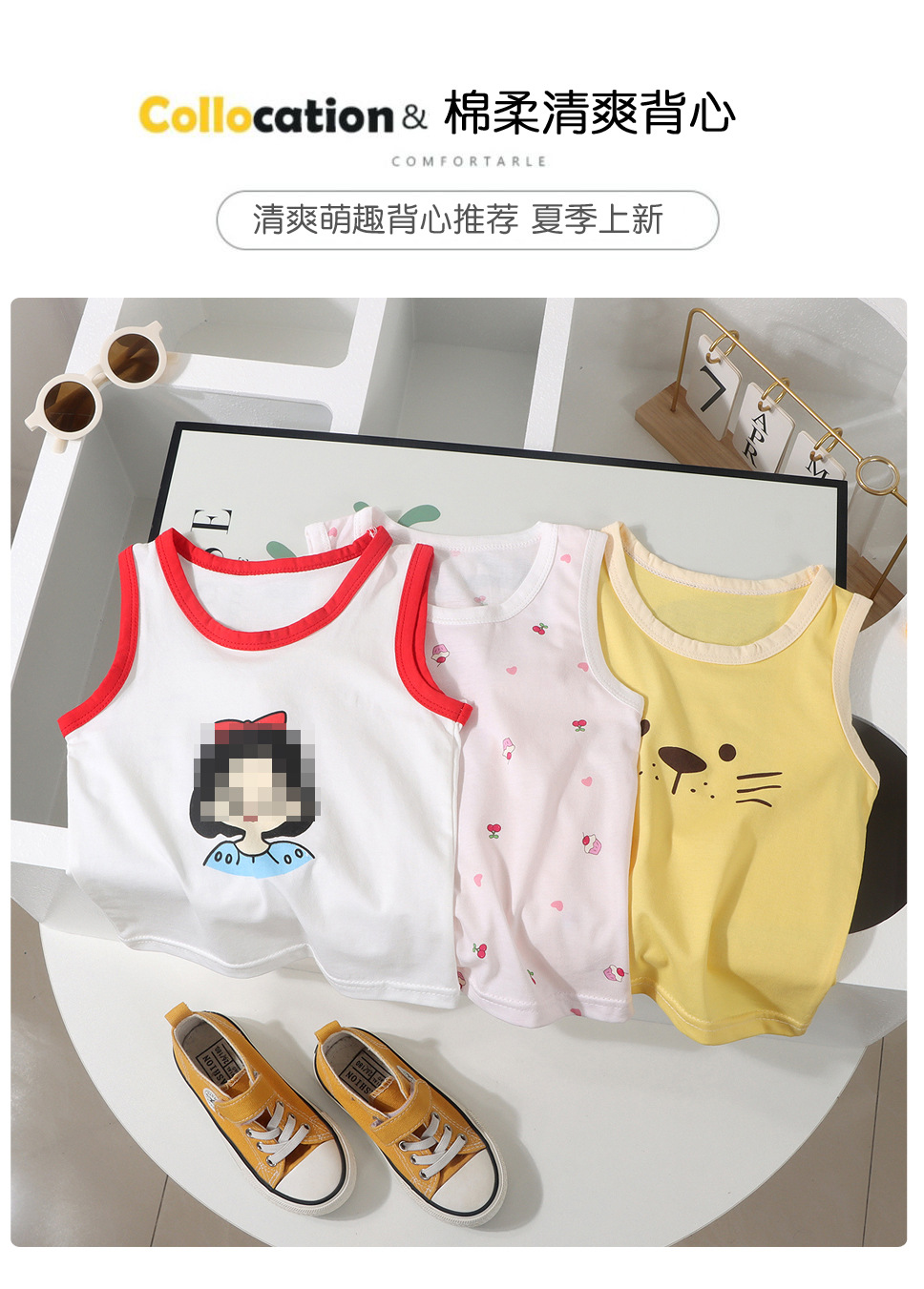 여름 어린이 순면 아기 조끼 슬링 소녀 얇은 민소매 탑 어린이 아기 배꼽 보호 옷베이스