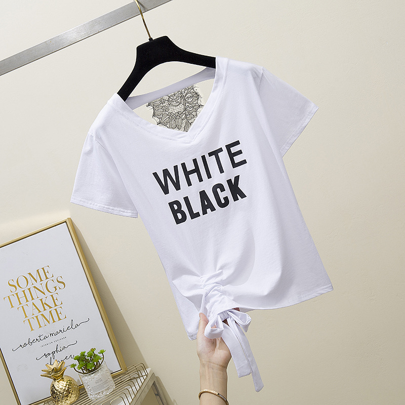 SAL01 # 여름 새로운 대형 지방 mm 느슨한 짧은 소매 레이스 숨기기 고기 V 넥 커버 고기 티셔츠 재킷스토어 가기