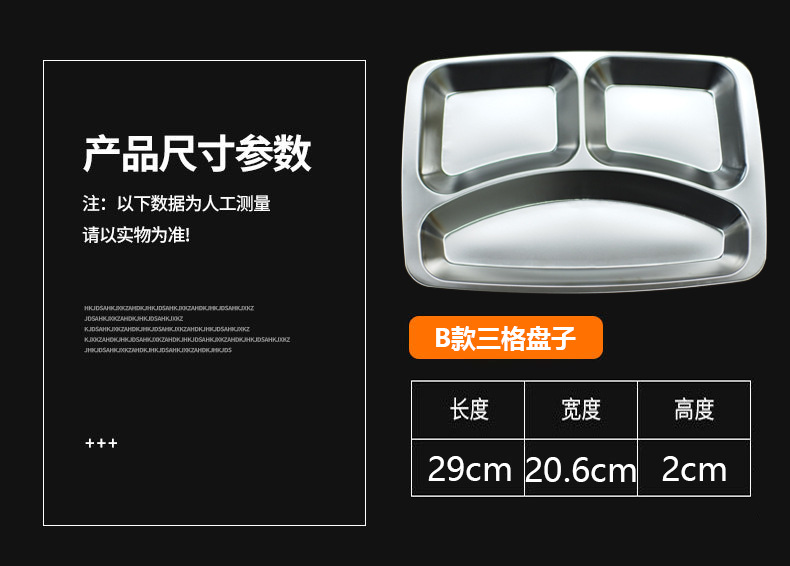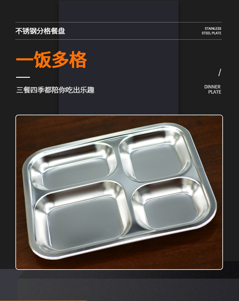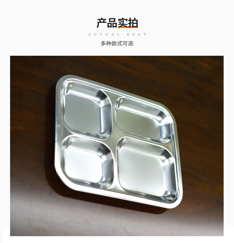 스테인레스 스틸 디너 플레이트 스쿨 매점 공장 도시락 패스트 푸드 호텔 학생 스플릿 라이스 플레이트 두꺼운 패스트 푸드 플레이트 디너 플레이트
