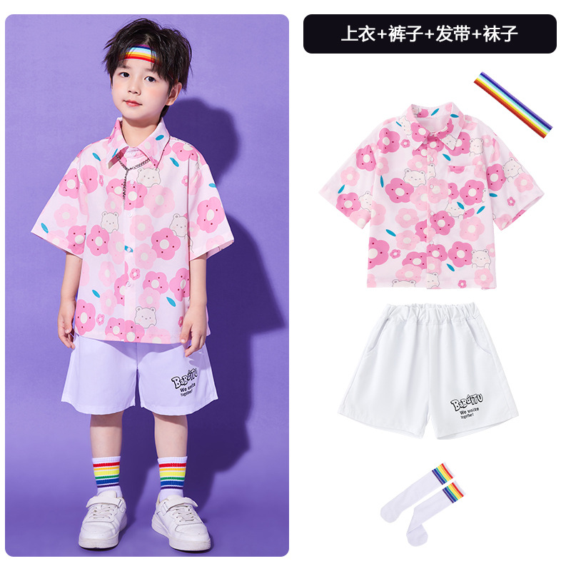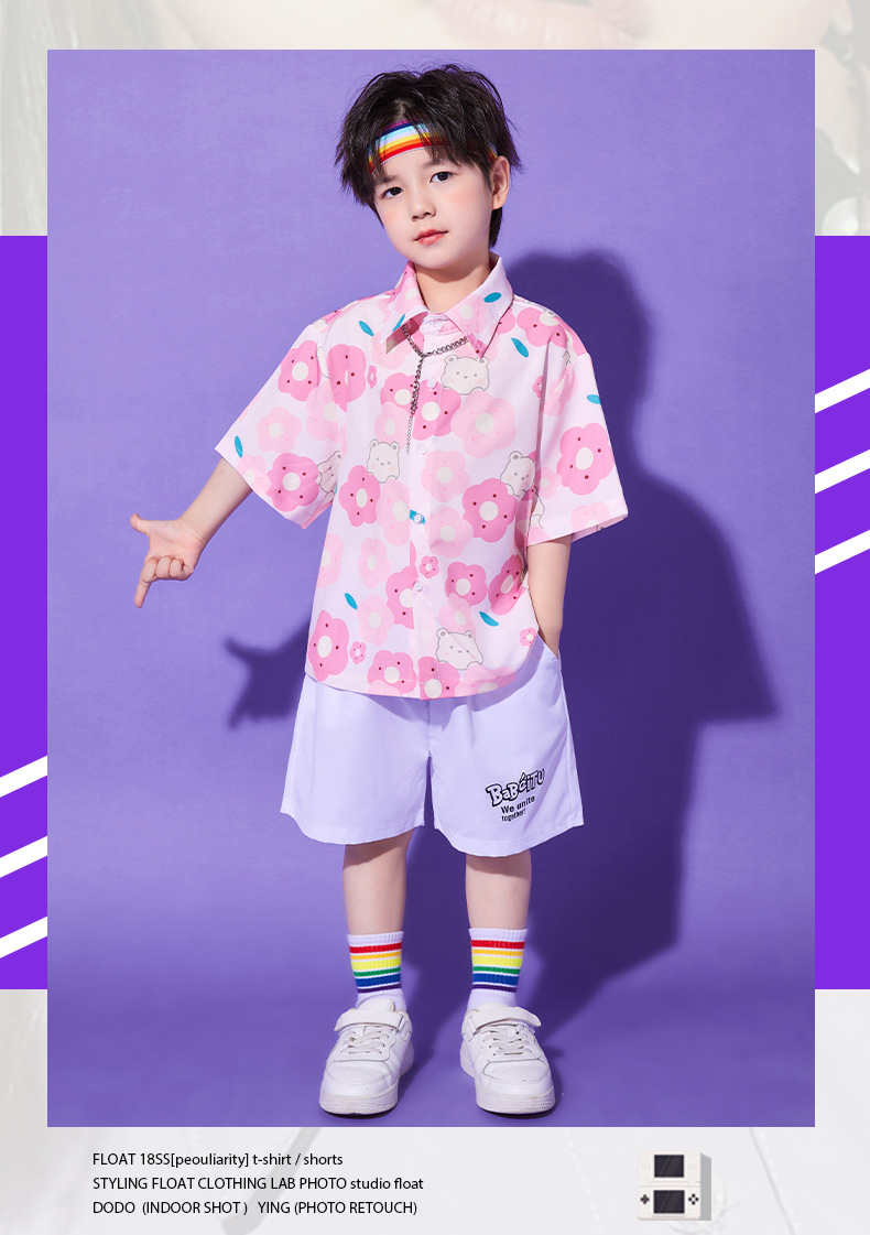 • DL05 핑크 꽃 셔츠 D02 화이트 블랙 반바지 컬러 스트립 헤어 스트랩 양말