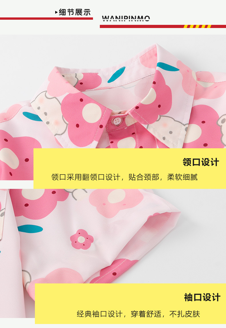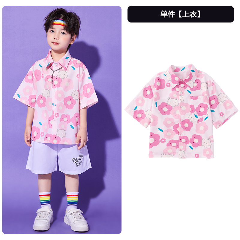 • DL05 핑크 꽃 셔츠 D02 화이트 블랙 반바지