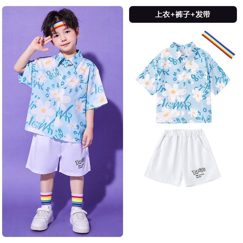 • DL05 스카이 블루 플라워 셔츠 D02 화이트 블랙 반바지 컬러 스트립 헤어 밴드