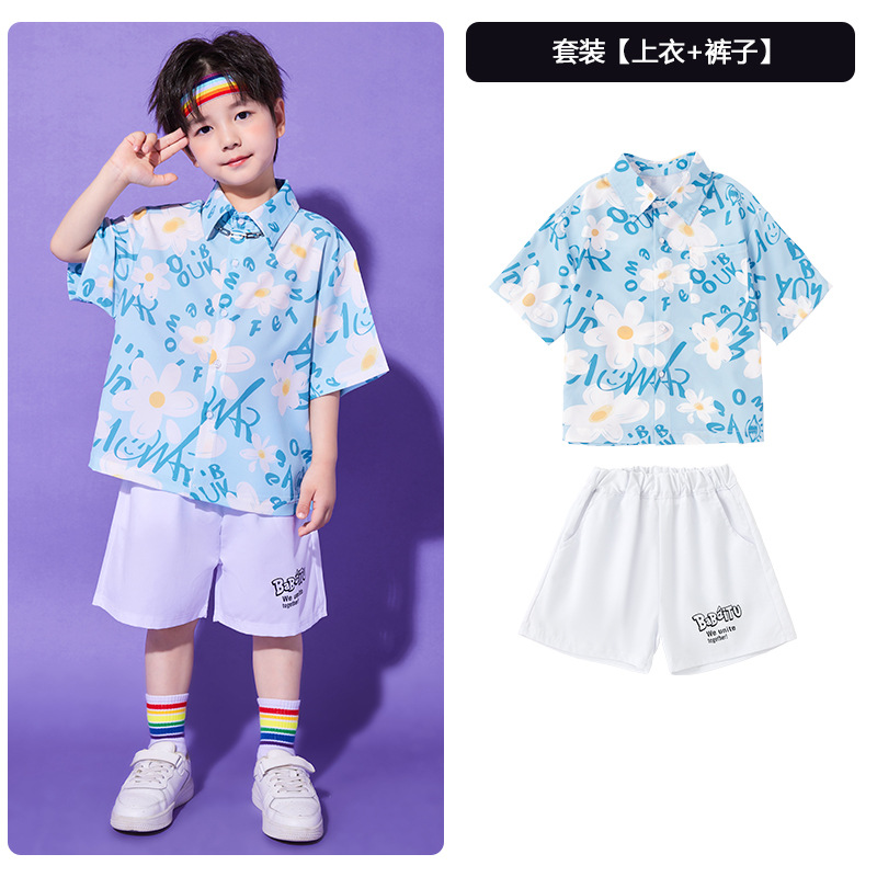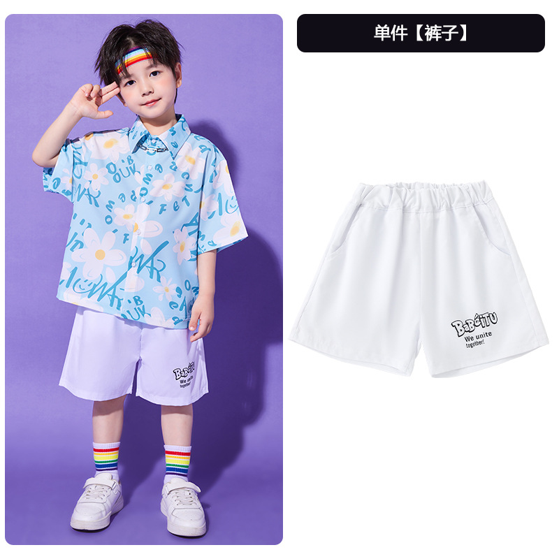 • DL05 하늘 푸른 꽃 셔츠 D02 흰색 검은 단어 반바지