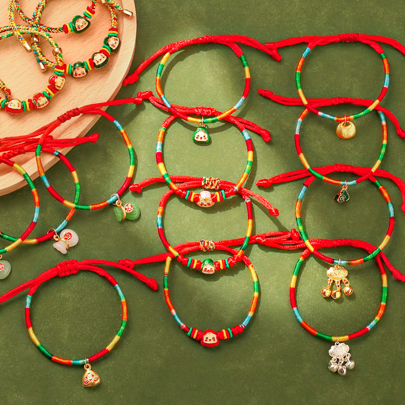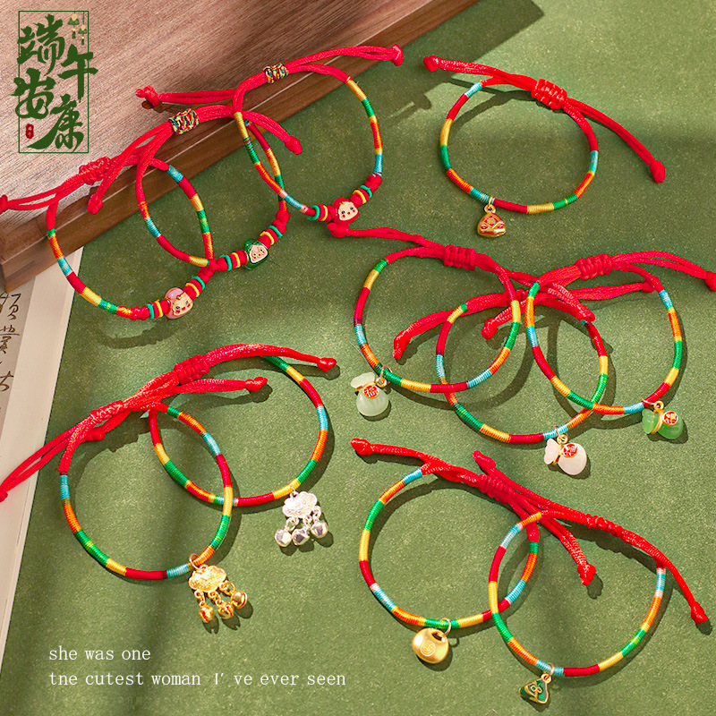 드래곤 보트 축제 다채로운 로프 작은 쌀 만두 로프 팔찌 손으로 짠 라인 어린이 손 로프 아기 손 보석스토어 가기