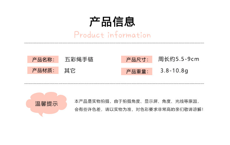 • 약 19.5cm 길이의 화려한 로프 팔찌 두께 (직경 약 3mm)