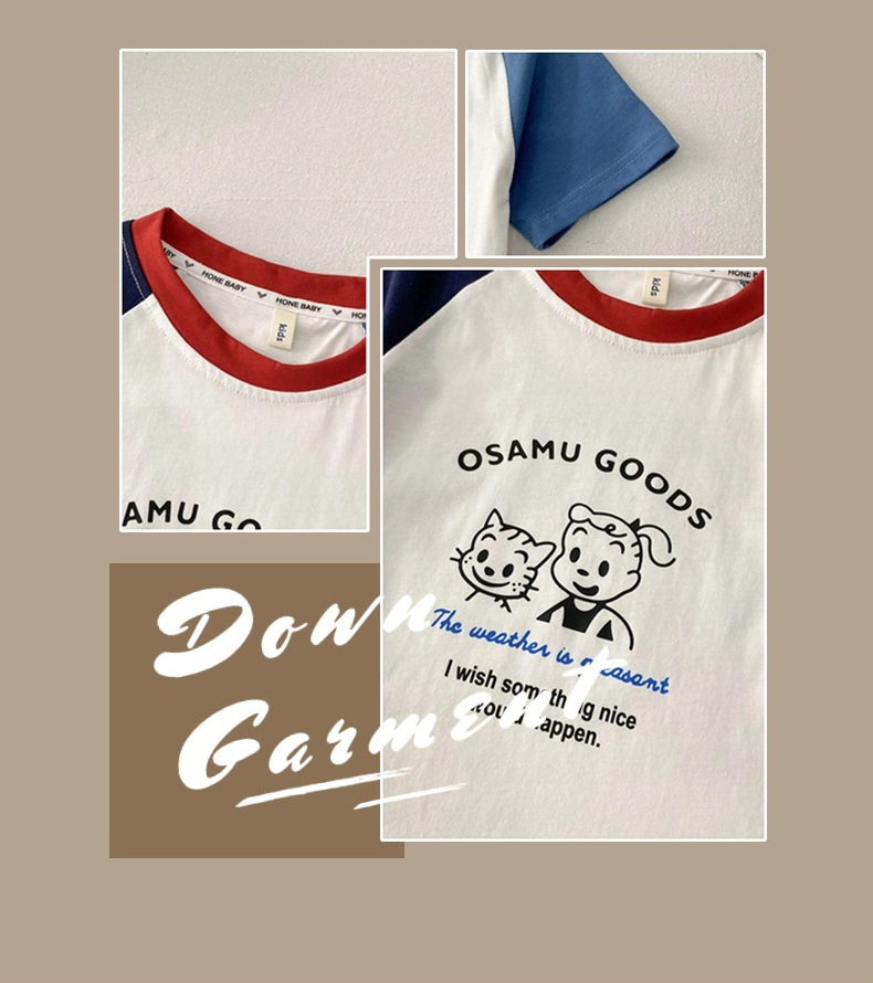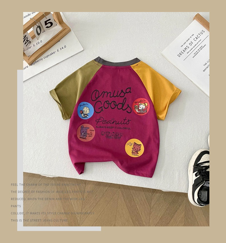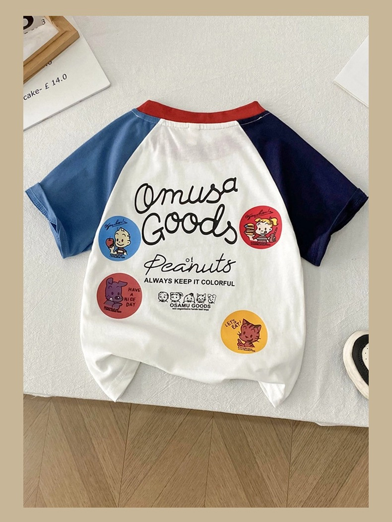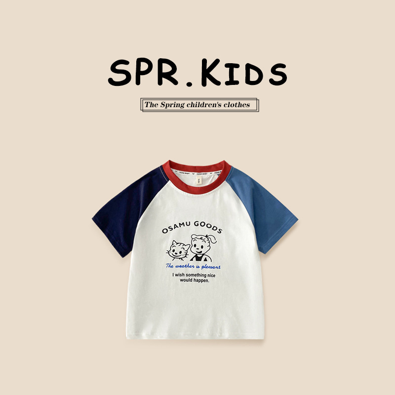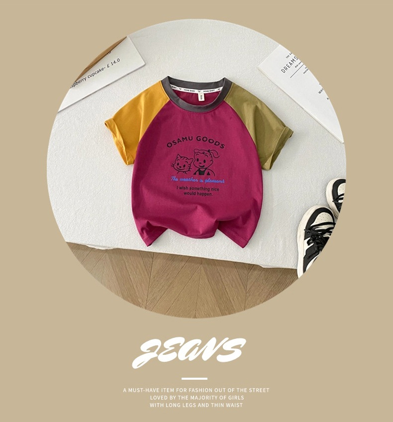 어린이 반팔 티셔츠 여름 착용 2025 새로운 스타일 중소 어린이 소녀 만화 여름 아동 의류 소년 컬러 매칭 탑 유행스토어 가기