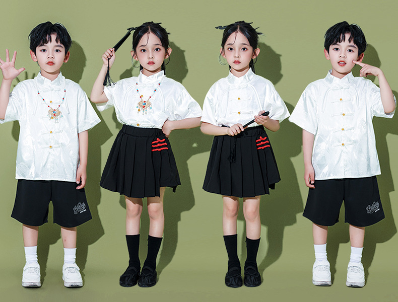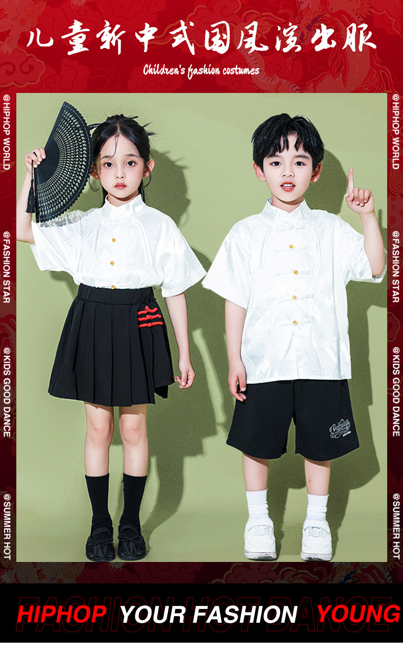 중국 스타일 공연 의류 소년 우슈 의류 세트 여아 한푸 6 월 1 일 댄스 공연 의류 어린이 합창 의류