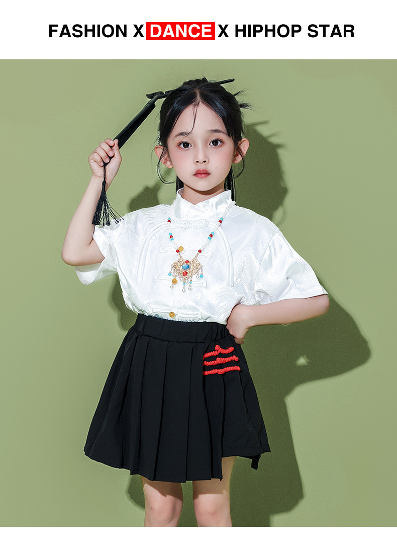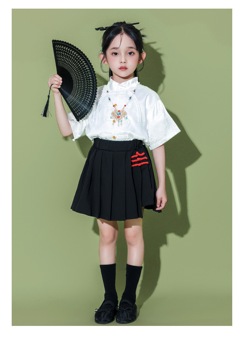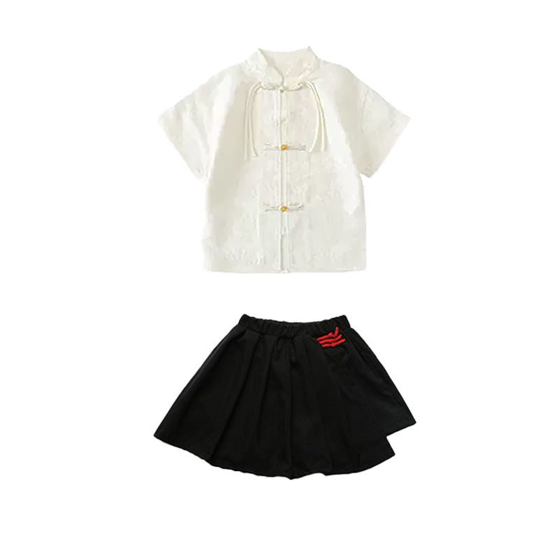 • A446 흰색 중국 스타일 반팔 B33 검은 치마