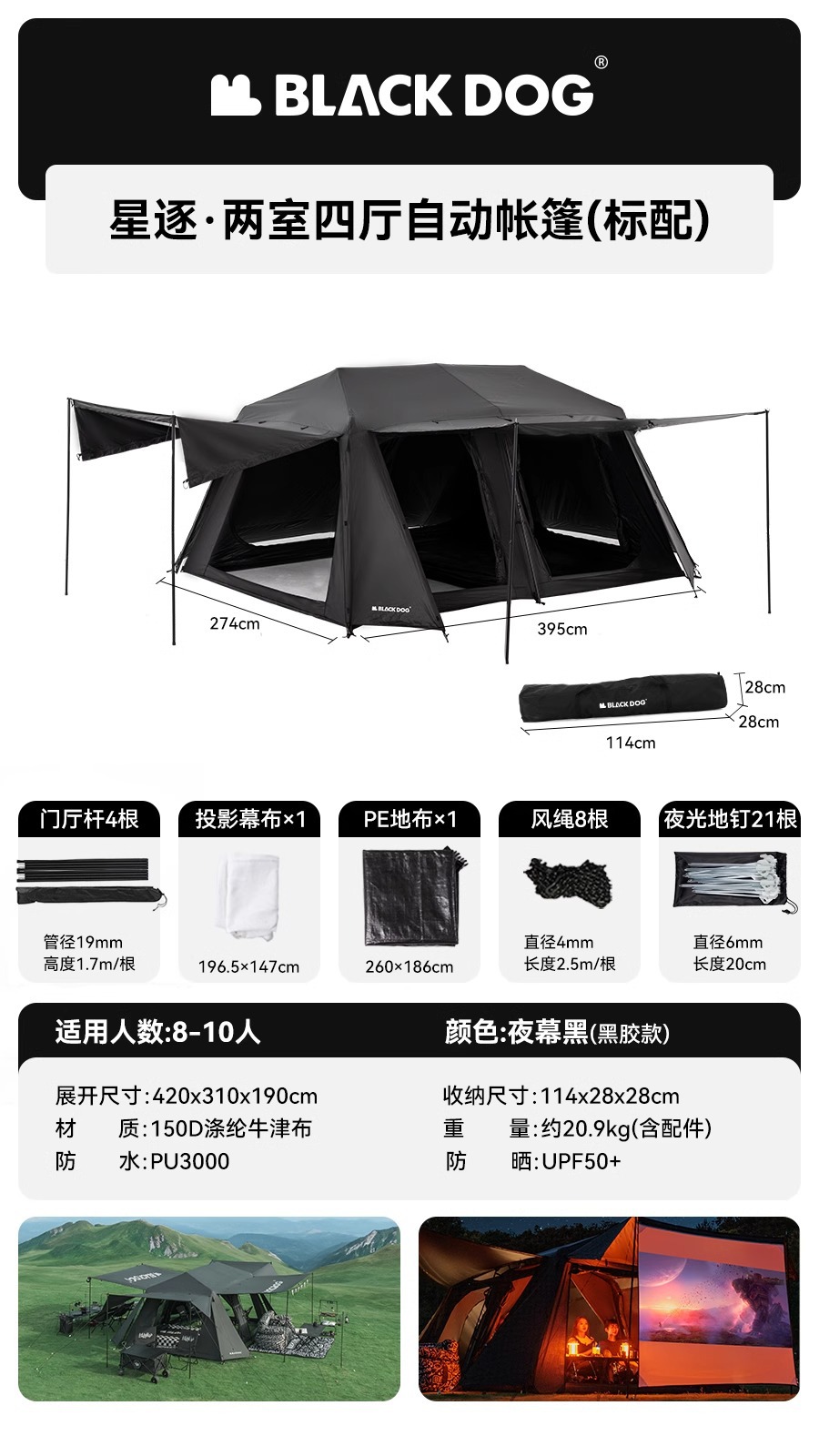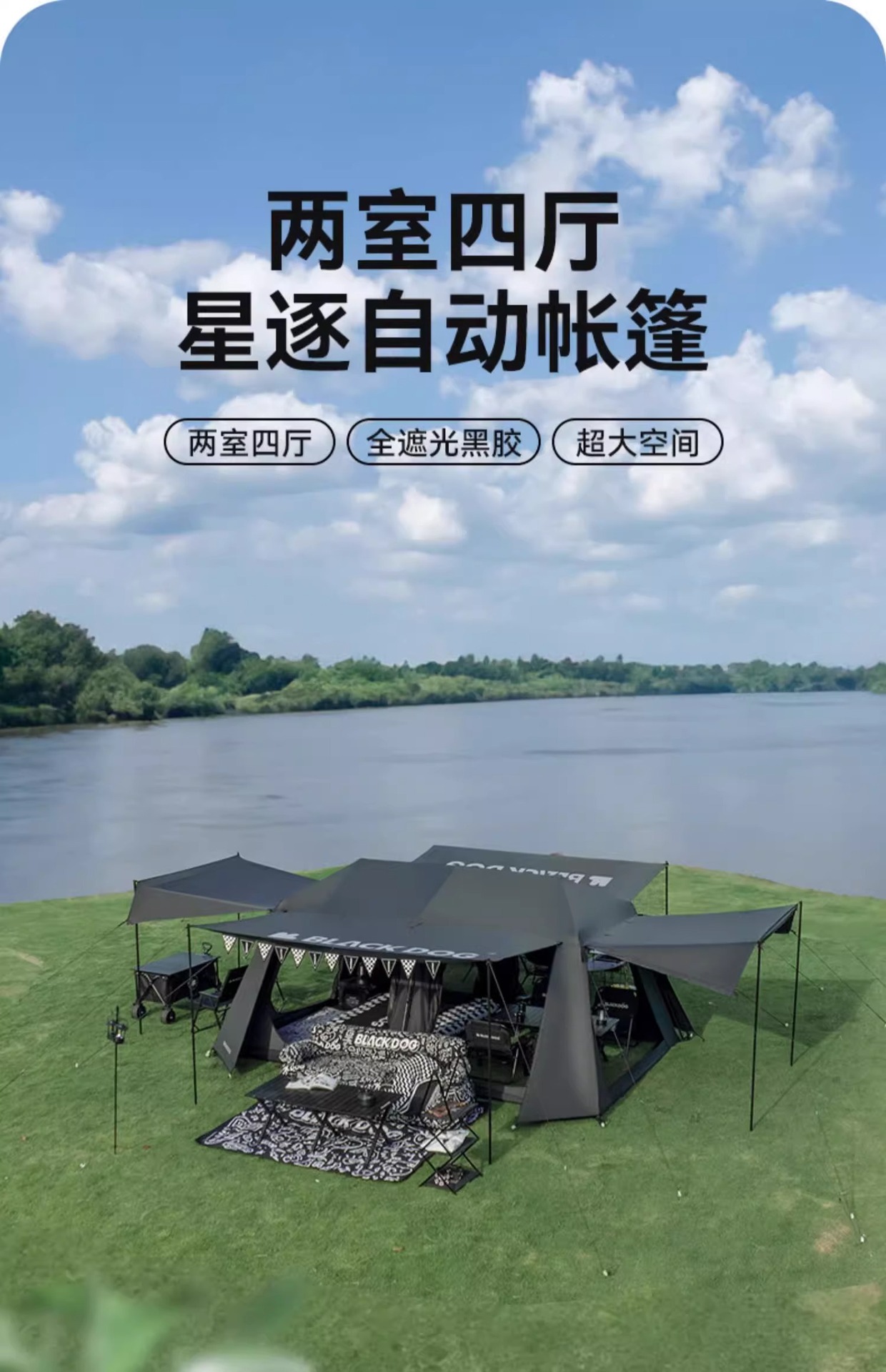 텐트 블랙 러버에 의해 블랙 개 스타 텐트 야외 캠핑 자외선 차단제 2 방 4 개 자동 빠른 오프닝