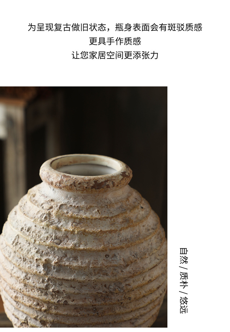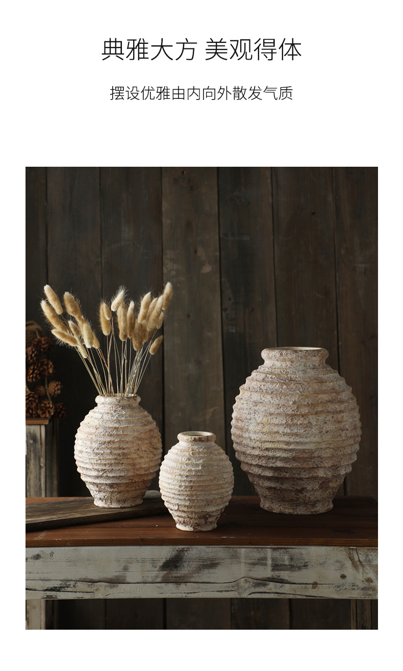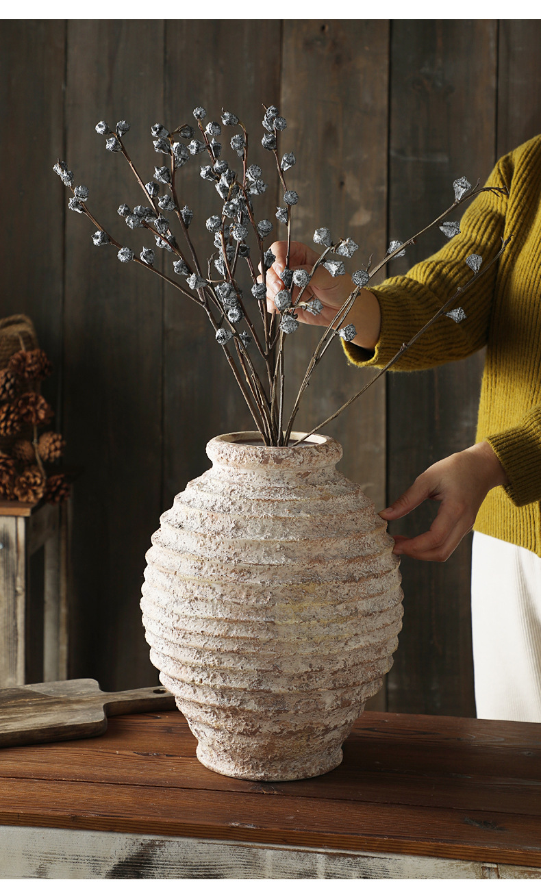 석기 수제 그린 서클 그릿 골동품 효과 아마존 핫 스타일 테이블 장식 꽃병