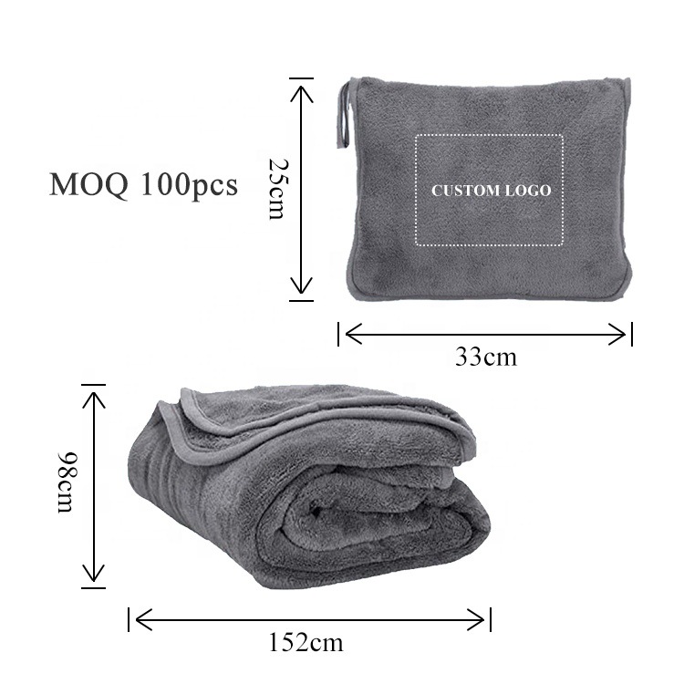 맞춤형 플란넬 여행용 담요, 휴대용 투인원 다기능 담요, 비행기 담요, 이중 목적 자동차 베개 담요