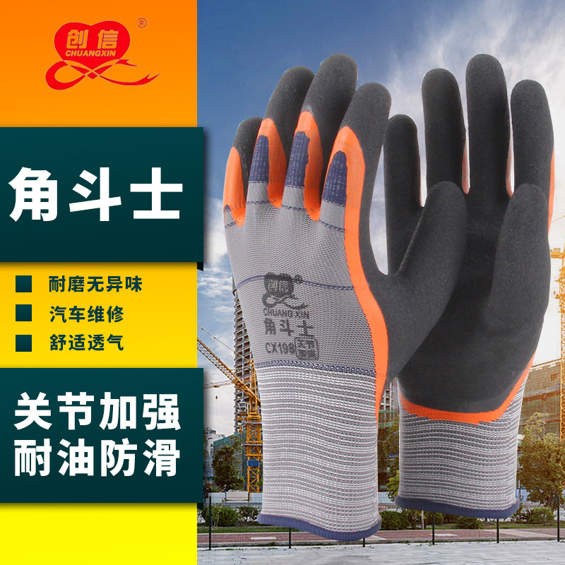 Chuangxin CX198 노동 보호 장갑 내마모성 작업 프로스티드 비 슬립 담그기 두꺼운 폼 고무 장갑 남성용스토어 가기