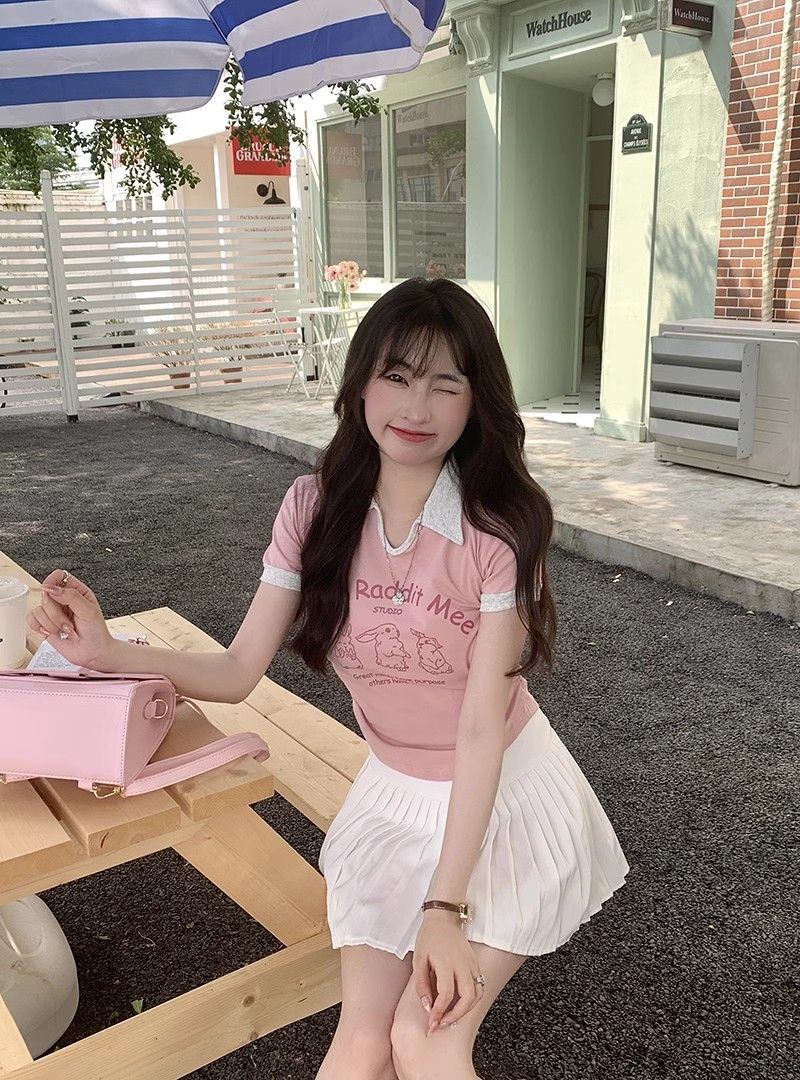 폴로 칼라 티셔츠 여성용 여름 간단한 귀여운 토끼베이스 셔츠 슬림핏 올매치 디자인 핫 걸 쇼트 탑스토어 가기