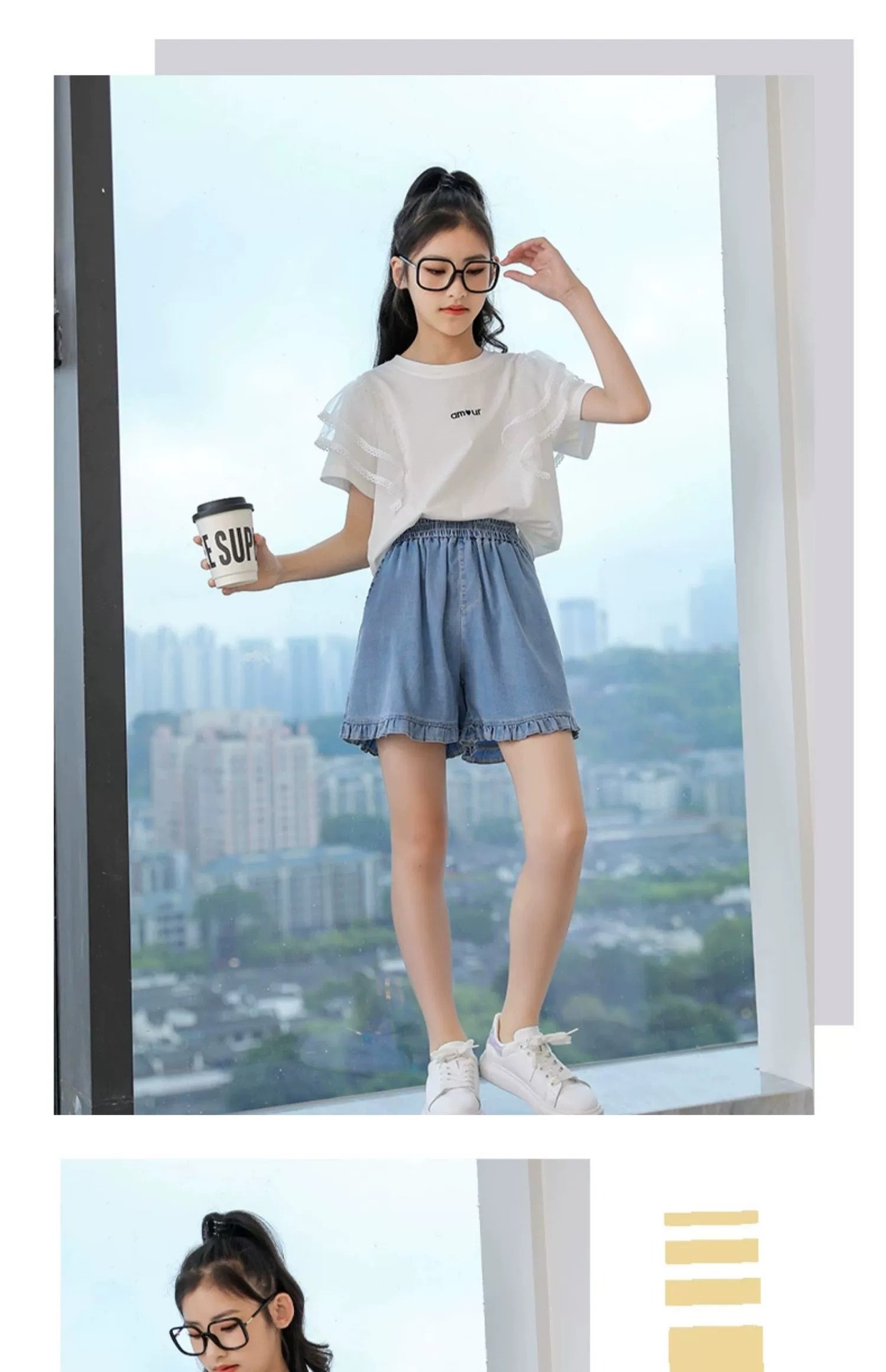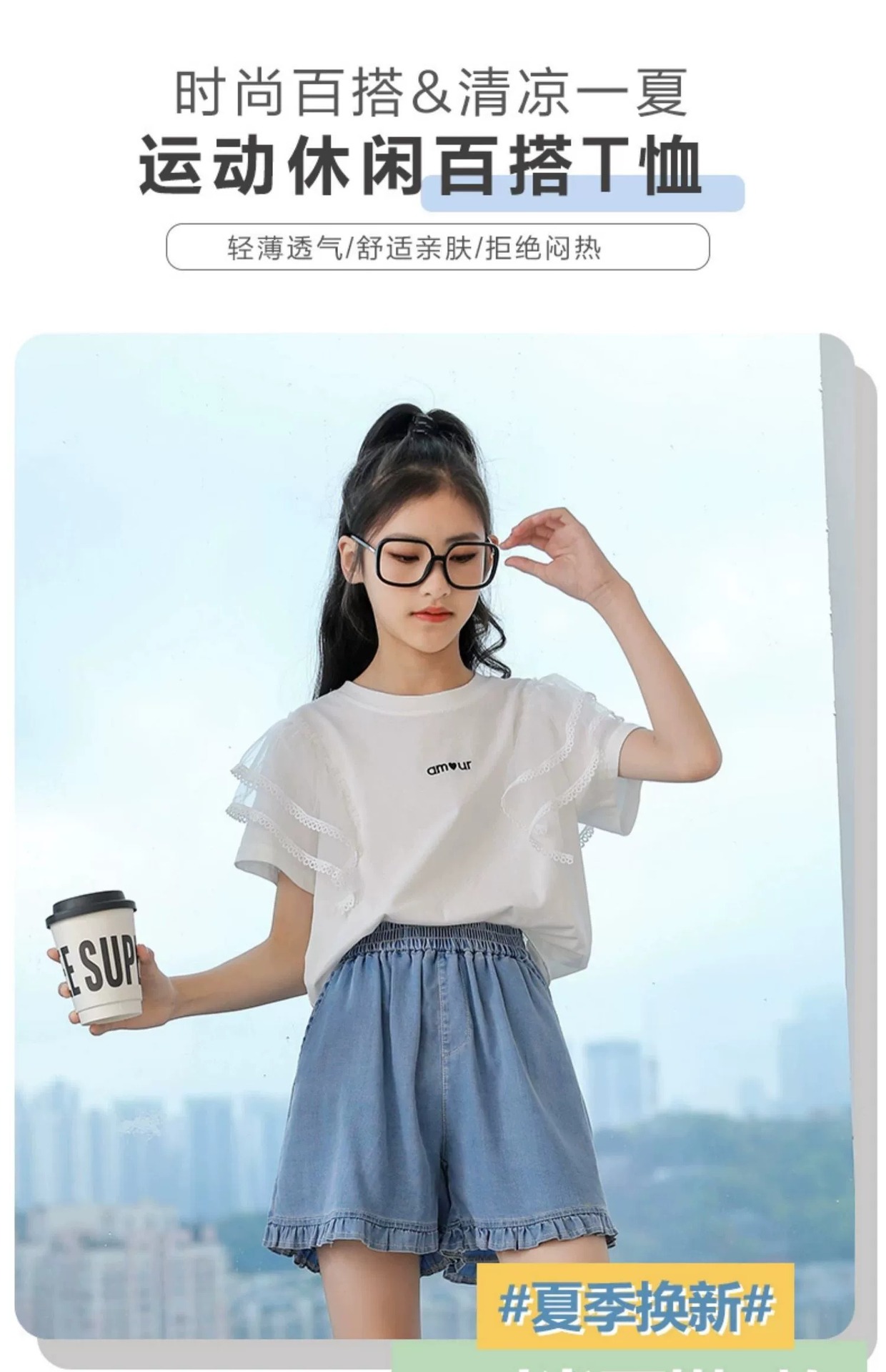여자 반팔 티셔츠 2024 여름 새로운 도착 CUHK 어린이 여름 퓨어 코튼 올 매치 걸스 여름 화이트 탑