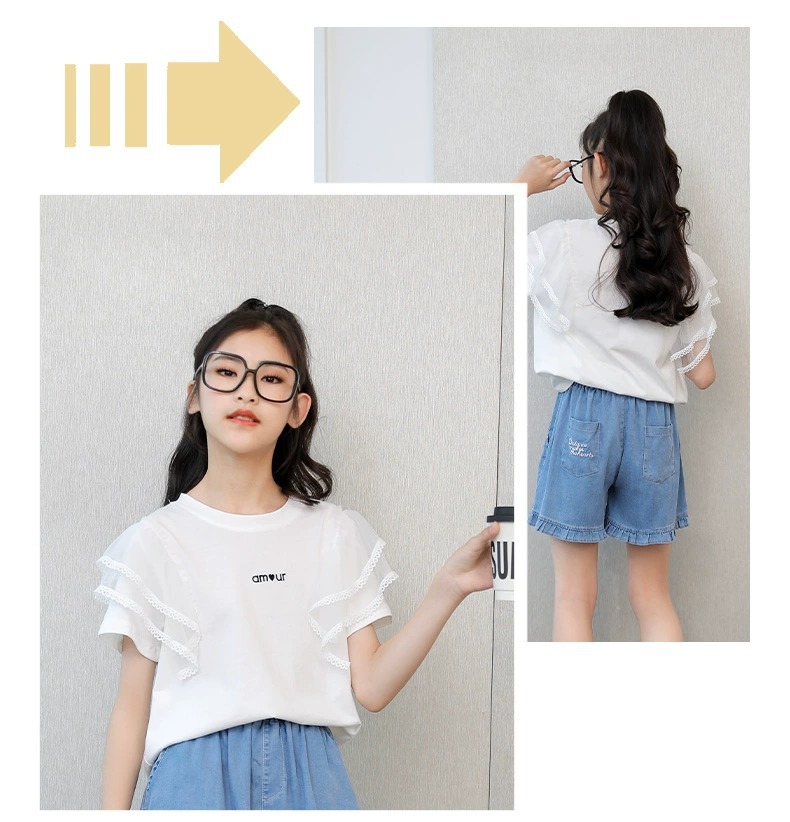 여자 반팔 티셔츠 2024 여름 새로운 도착 CUHK 어린이 여름 퓨어 코튼 올 매치 걸스 여름 화이트 탑스토어 가기