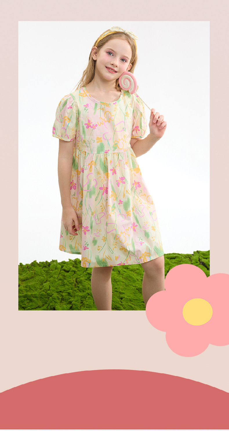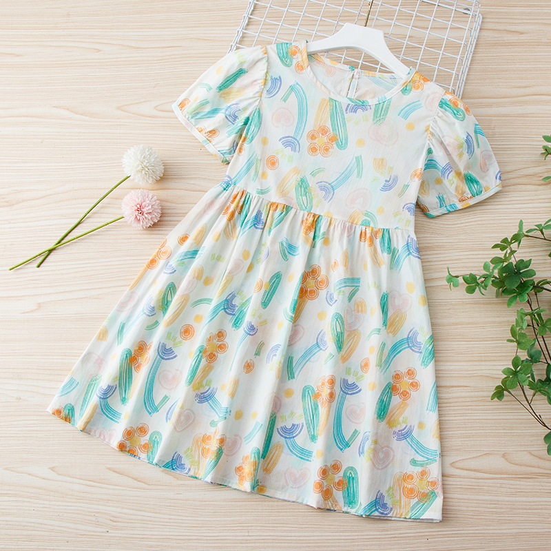 소녀의 원피스 여름 원피스 큰 키즈 달콤한 레트로 버블 짧은 소매 어린이 순수 코튼 스커트 어린 소녀의 공주 스커트