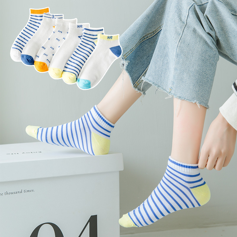 • WD42 보트 양말 여성 귀여운 줄무늬