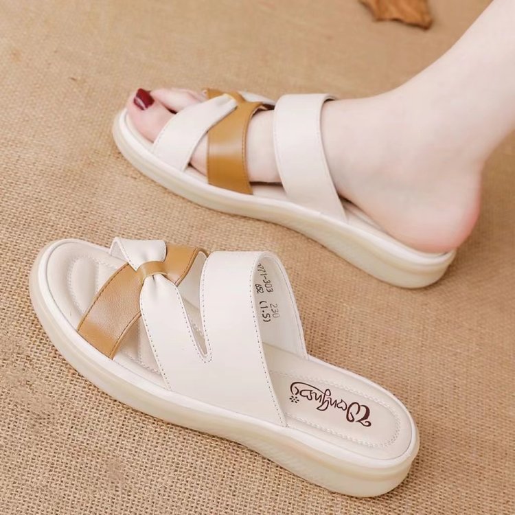 편안한 쇠고기 텐더 부드러운 바닥 슬리퍼 여성의 봄과 여름 외부 부드러운 가죽 어머니 신발 중년 및 노인 플랫 샌들 올 매치 뉴 스타일스토어 가기
