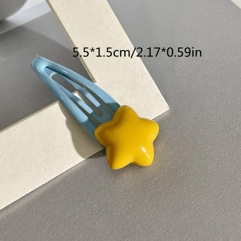 만화 밝은 파란색 노란색 별 bb 클립 머리핀 귀여운 속 스타일 달콤한 소녀 간단한 측면 앞머리 클립