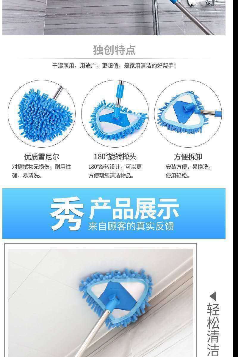 三角拖把伸缩杆子丝头有黑色,蓝色,雪尼尔三角布包边布蓝色,白色,批次不同颜色不同,发货随机,介意慎拍,产品实拍图片联系客服,